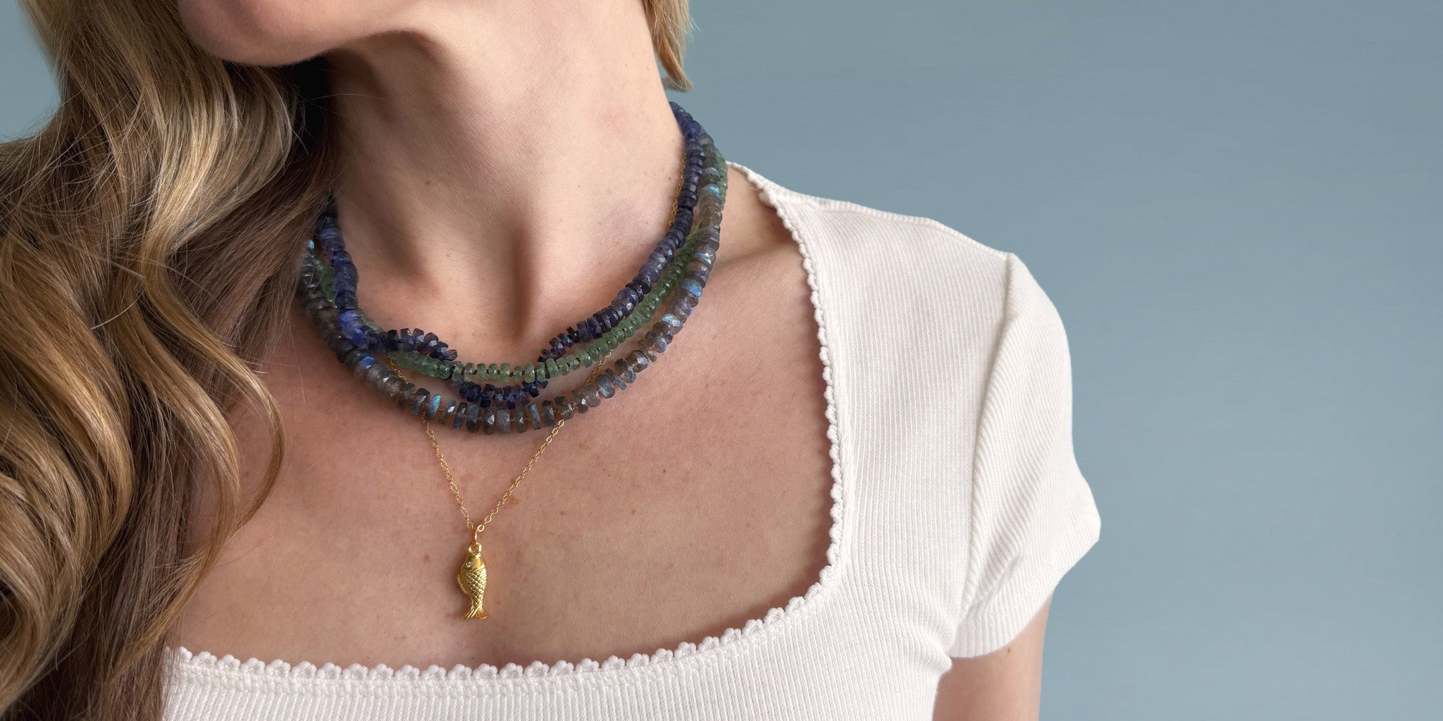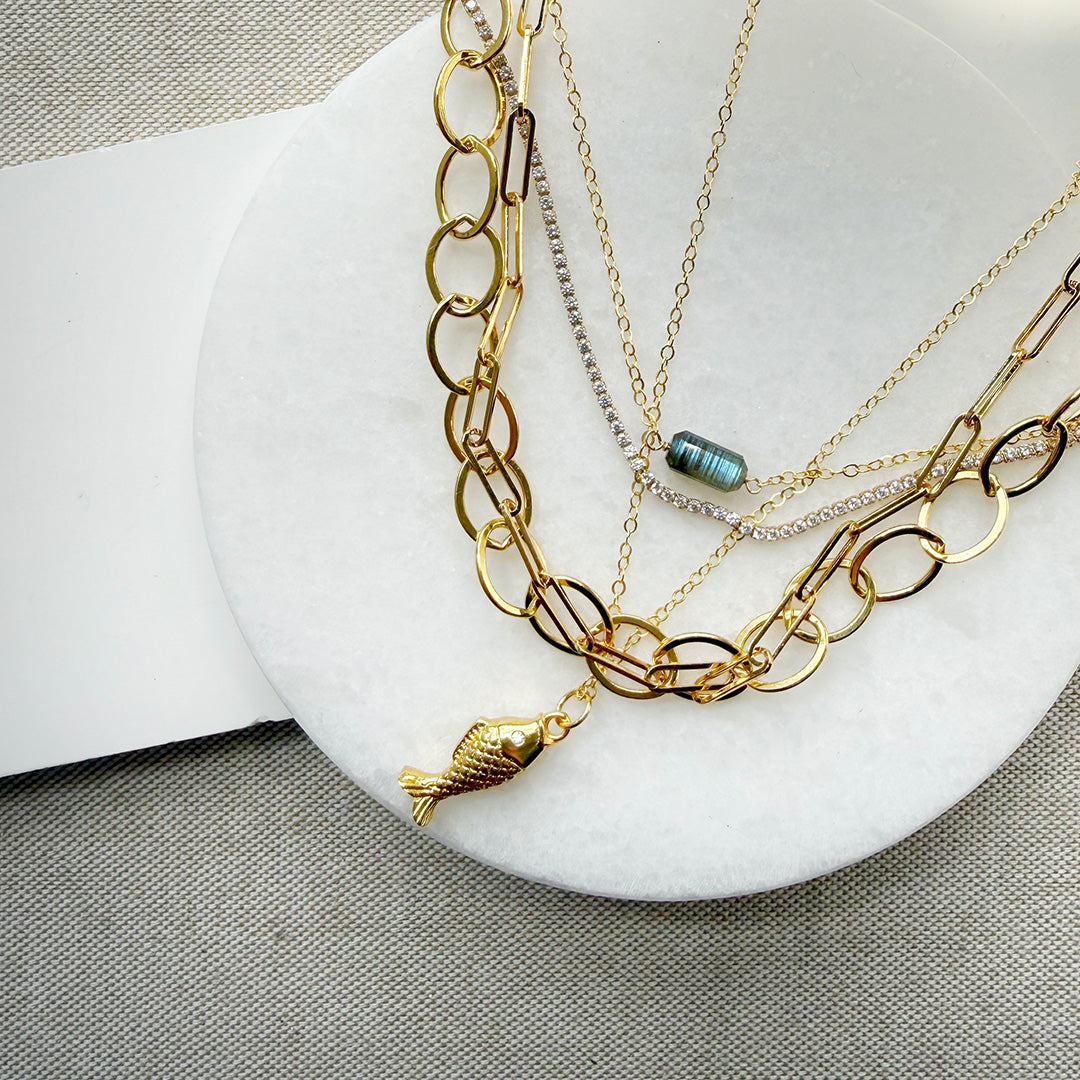 Obsessed with this necklace! It is such a rich color and the sparkle is just beautiful. I get so many compliments on it when I wear it. It also looks fabulous layered with my gold pieces.