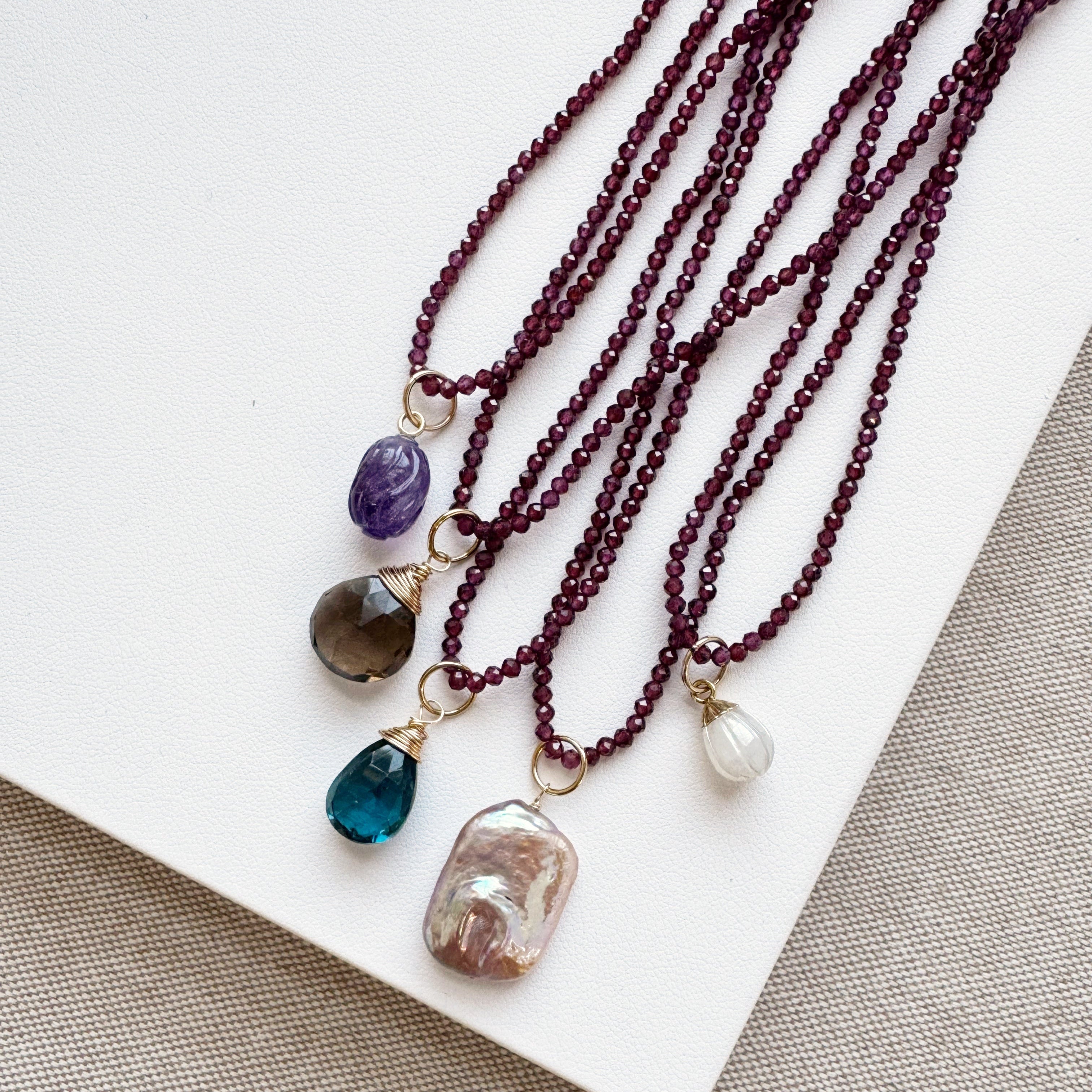 Add sparkle to any outfit with these silk strung sapphire necklaces in stunning colorways. Layer beautifully with other necklaces or add our Bijou charms for a completely different look. Shop our Essential Chains