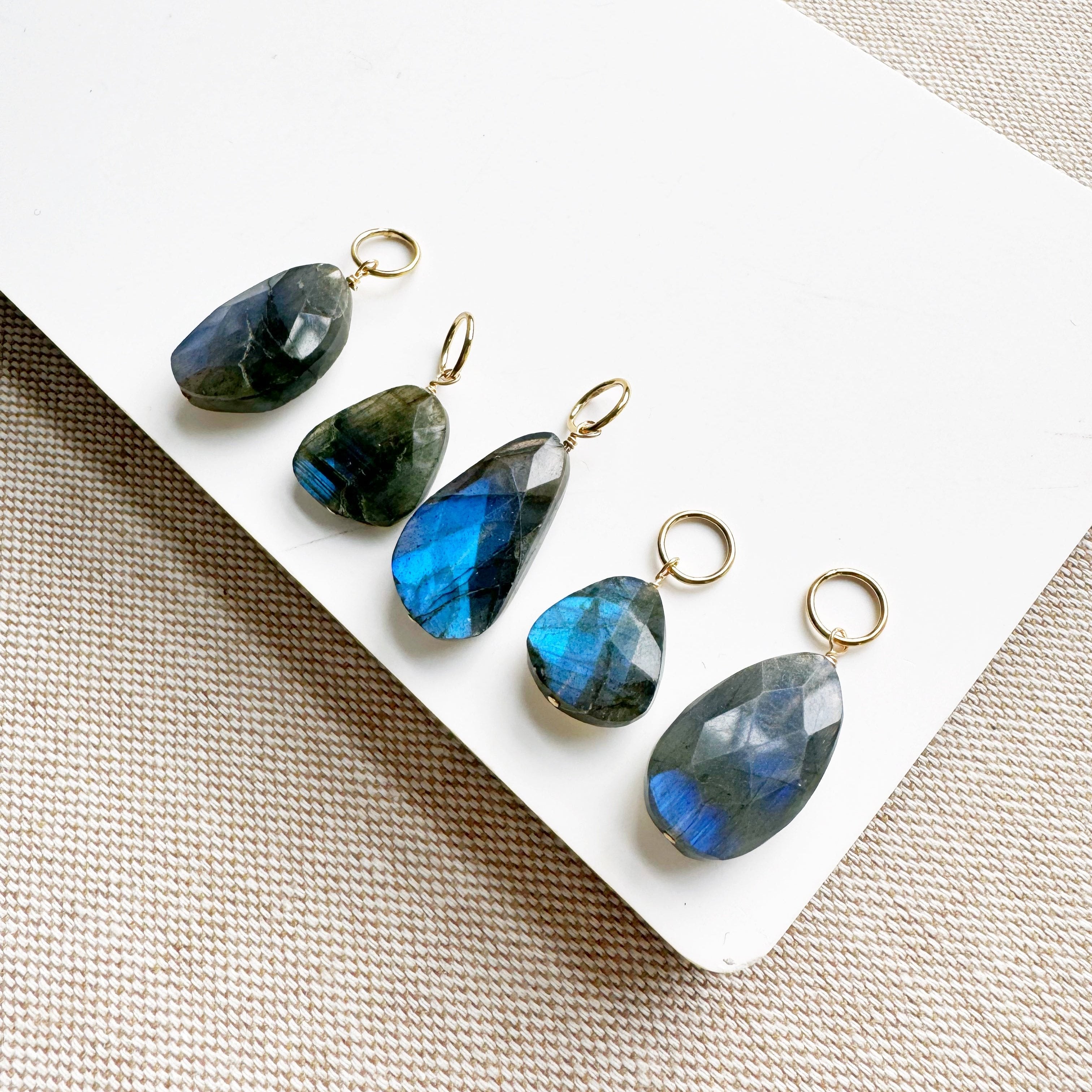 The Labradorite Flash Charm will beautifully transform your Bijou Necklace or any classic chain style. Personalize your necklace by mixing and matching, have fun and don't overthink it.