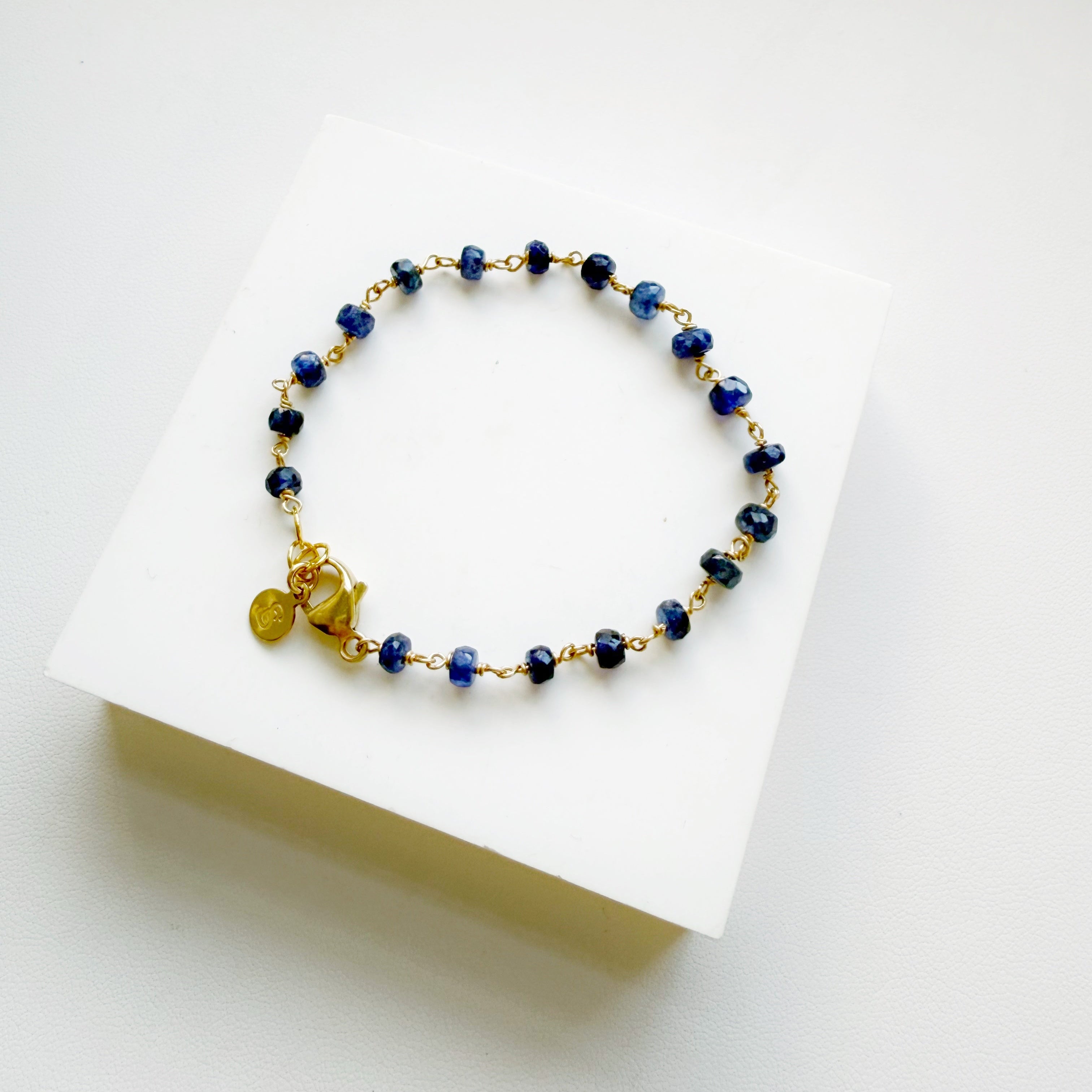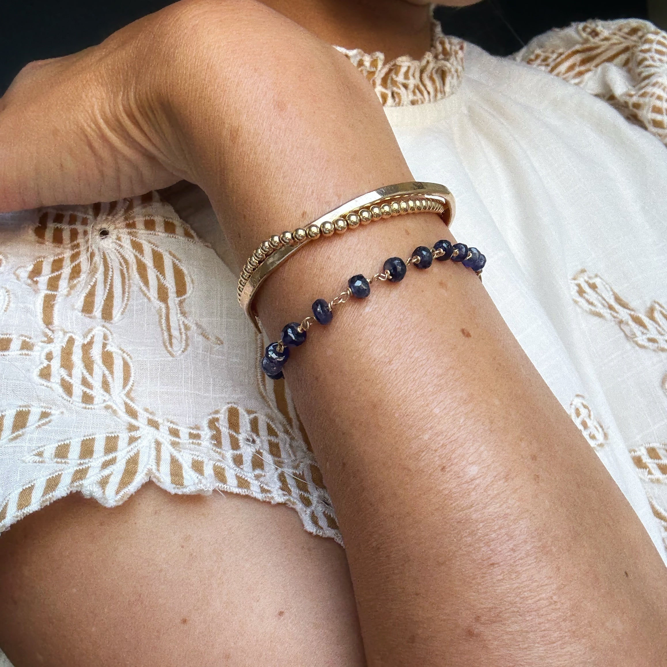 Introducing the Cordelia Bracelet, featuring beautifully wire-wrapped blue sapphires that add a touch of sparkle to any look. Designed to fit comfortably on wrists sized 6.5 to 7.25 inches, this bracelet blends delicate craftsmanship and classic style, making it a perfect accessory for everyday wear or special occasions.