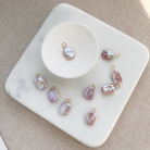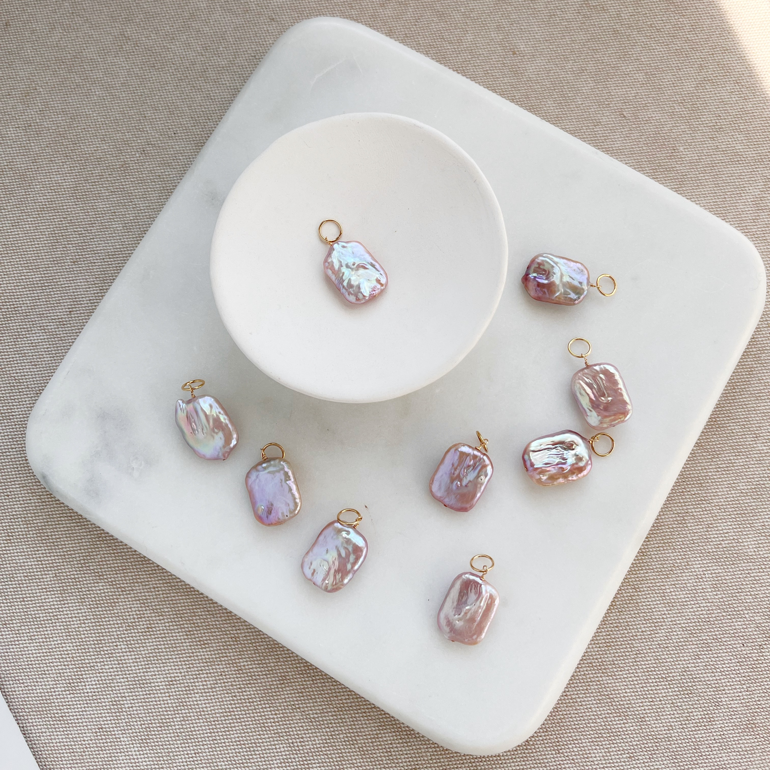 Personalize your Bijou Necklace or any of our Essential Chains with our shimmery Oblong Blush Pearl bijou charm.  With lavender and blue undertones, each freshwater pearl has it's own unique character, making it a special addition to your collection.