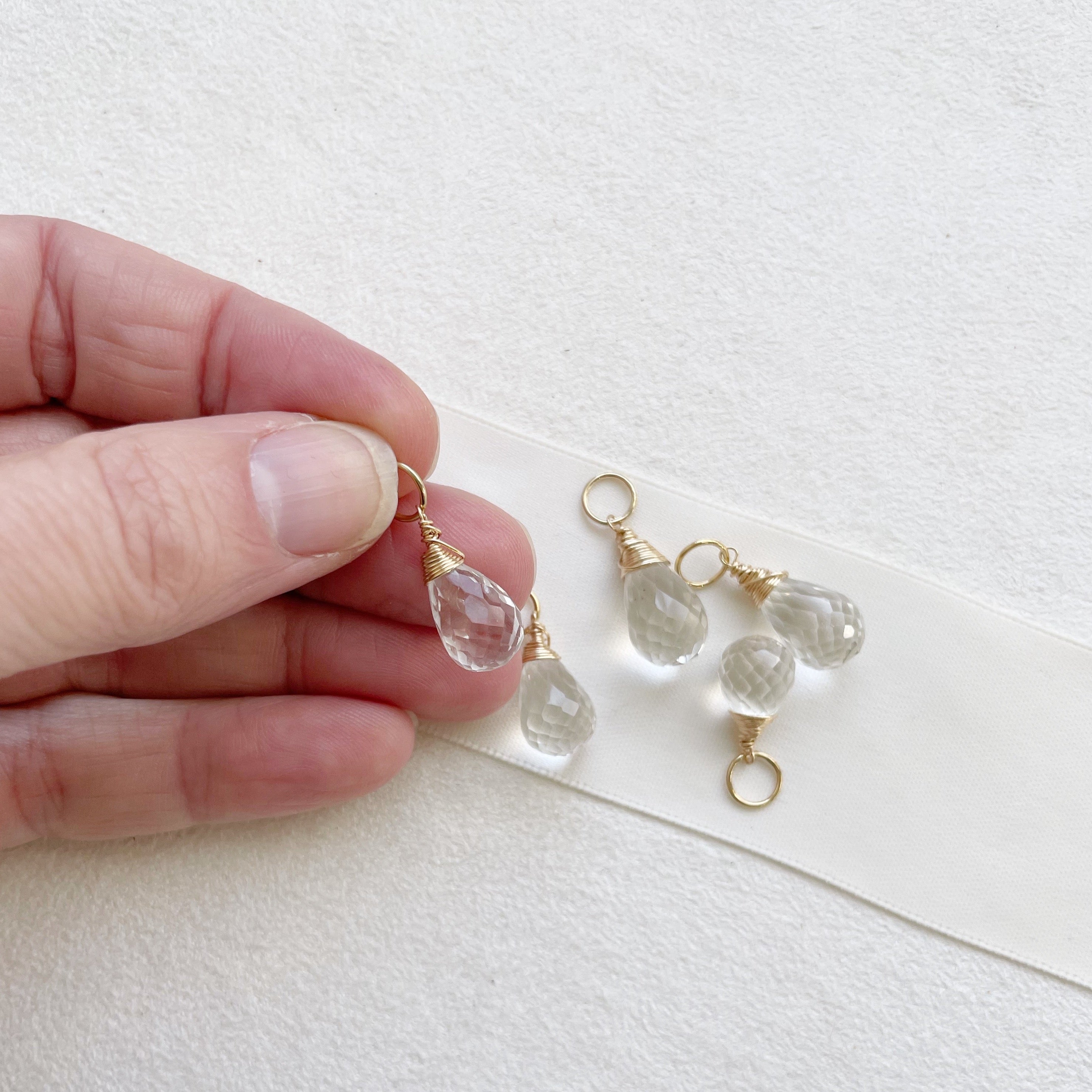 Shimmering crystal quartz drops. About 1 inch.