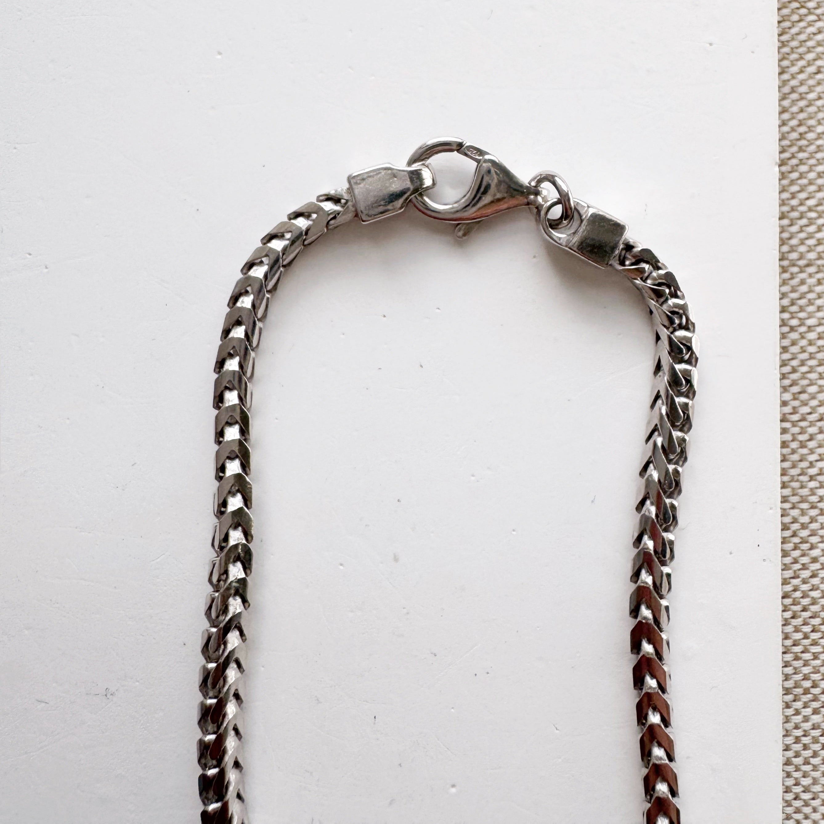 The defining feature of a Franco chain is its interwoven V-shaped links. These links create a distinctive pattern that adds visual interest to the chain. Franco chains are known for their strength and durability. An Italian Chain.