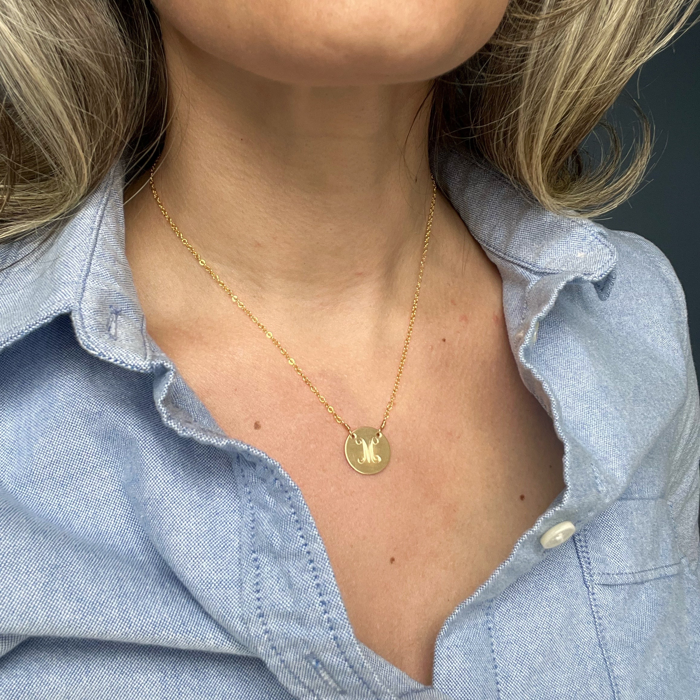 Polished and personal, our Single Initial Necklace has a hand brushed finish and is engraved in our Doylestown, PA studio with a single letter that is meaningful and close to your heart. Layers beautifully with other necklaces and comes in both 14K Gold Filled and Sterling Silver.