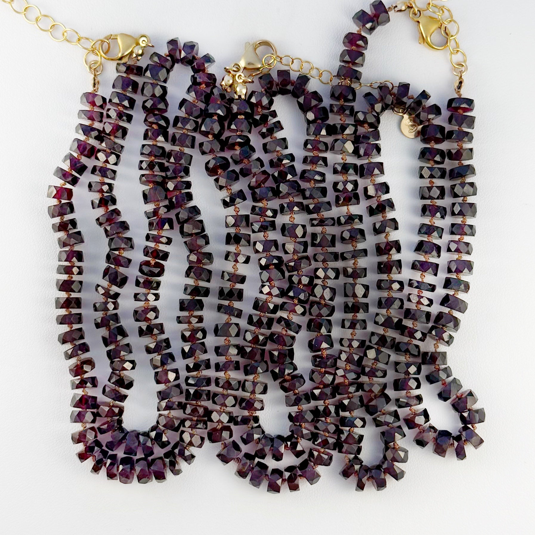 For our Sienna Necklace, Sarah sourced spectacular garnet gemstones in a deep, rich, velvety red hue that stops you in your tracks. Our talented makers knot them by hand on coordinating silk for show-stopping impact. These garnets are tyre cut for a brilliant, fiery flash that catches every bit of light and throws it right back out. In term of styling, this necklace does all the heavy lifting for you. Put it on, and both your look and your confidence are instantly transformed. Guaranteed to spark joy every time you catch your reflection! Quantities are limited.