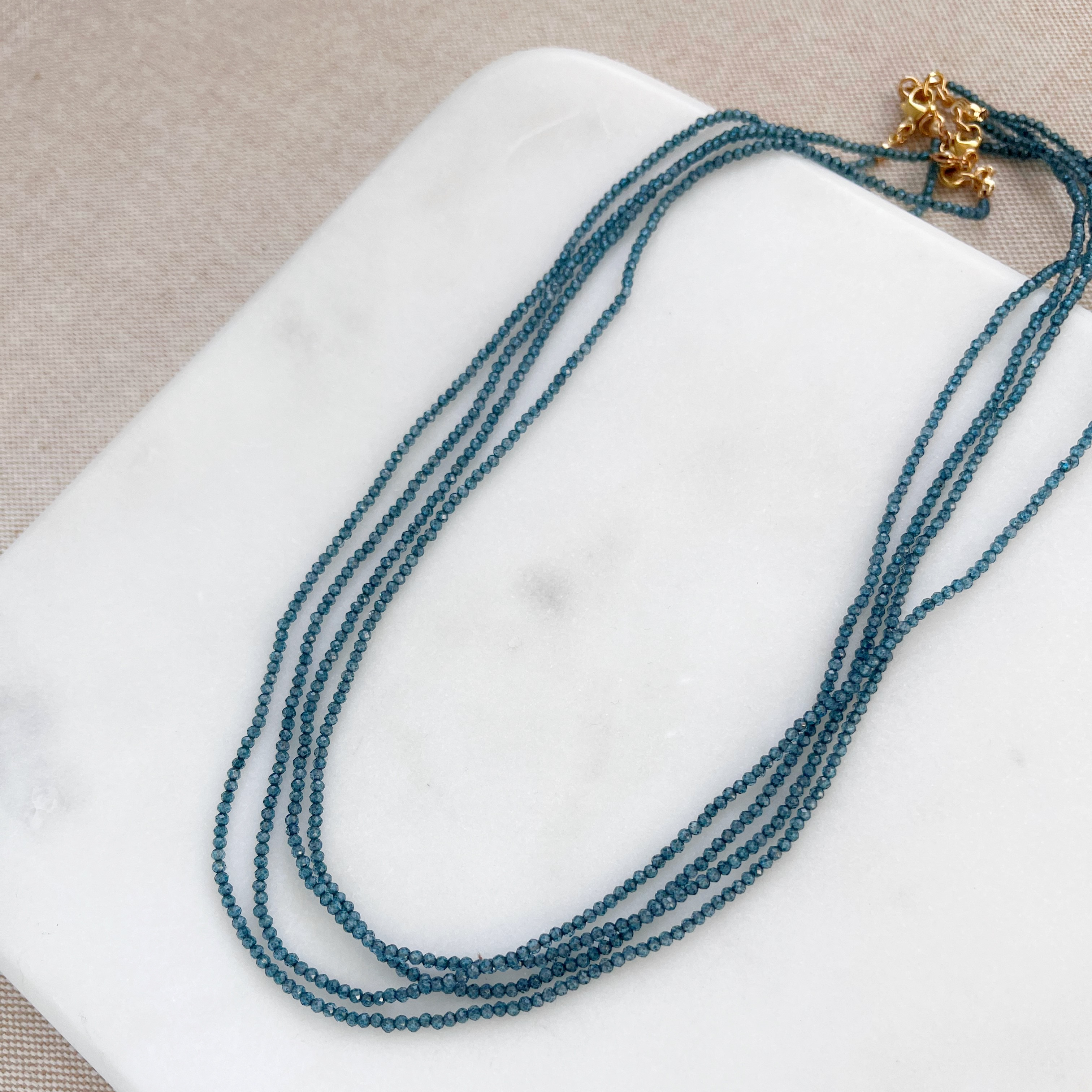 Add sparkle to any outfit with our silk strung Bijou Necklace in rich, vibrant london blue topaz. Layers beautifully with other necklaces or add our Bijou charms for a completely different look.