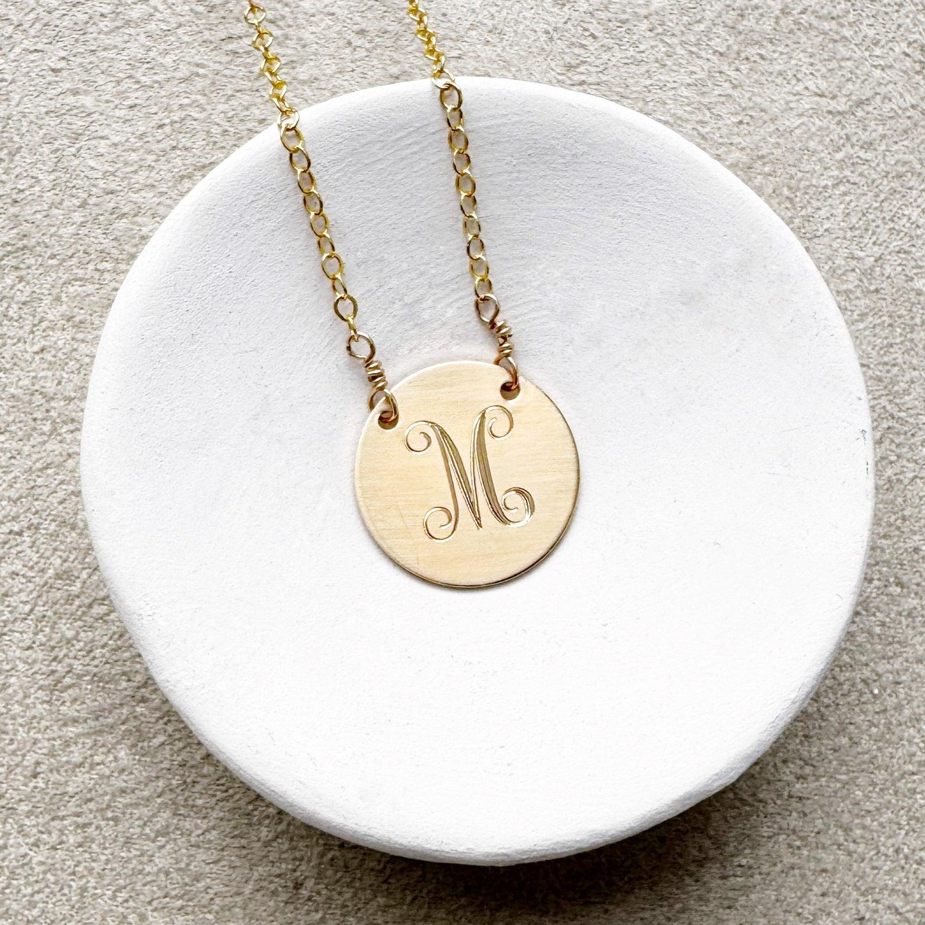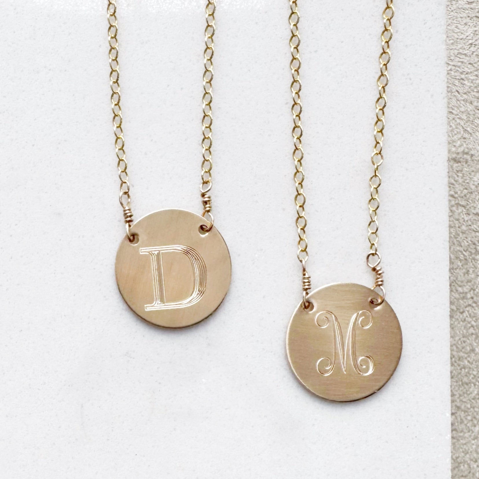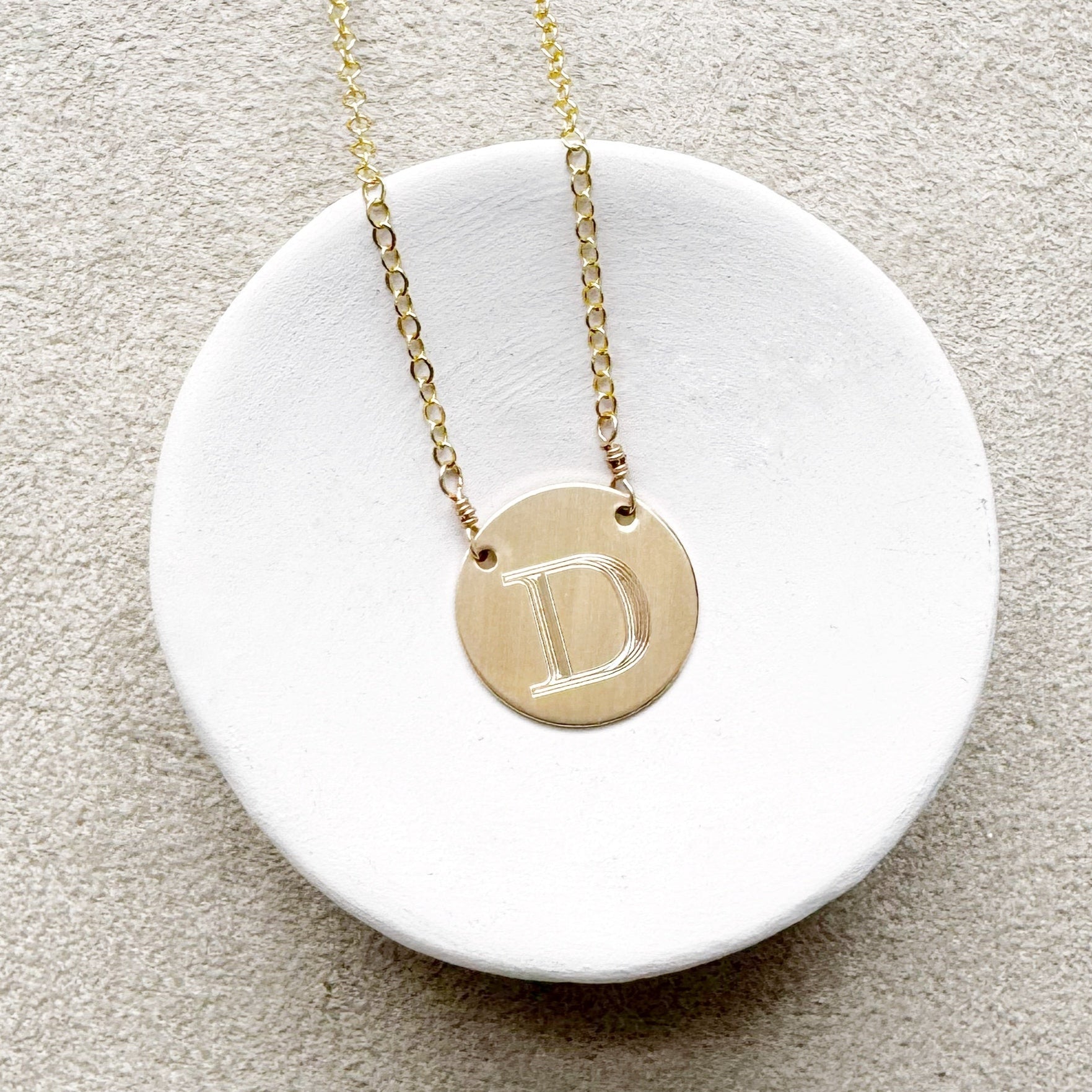 Polished and personal, our Single Initial Necklace has a hand brushed finish and is engraved in our Doylestown, PA studio with a single letter that is meaningful and close to your heart. Layers beautifully with other necklaces and comes in both 14K Gold Filled and Sterling Silver.
