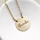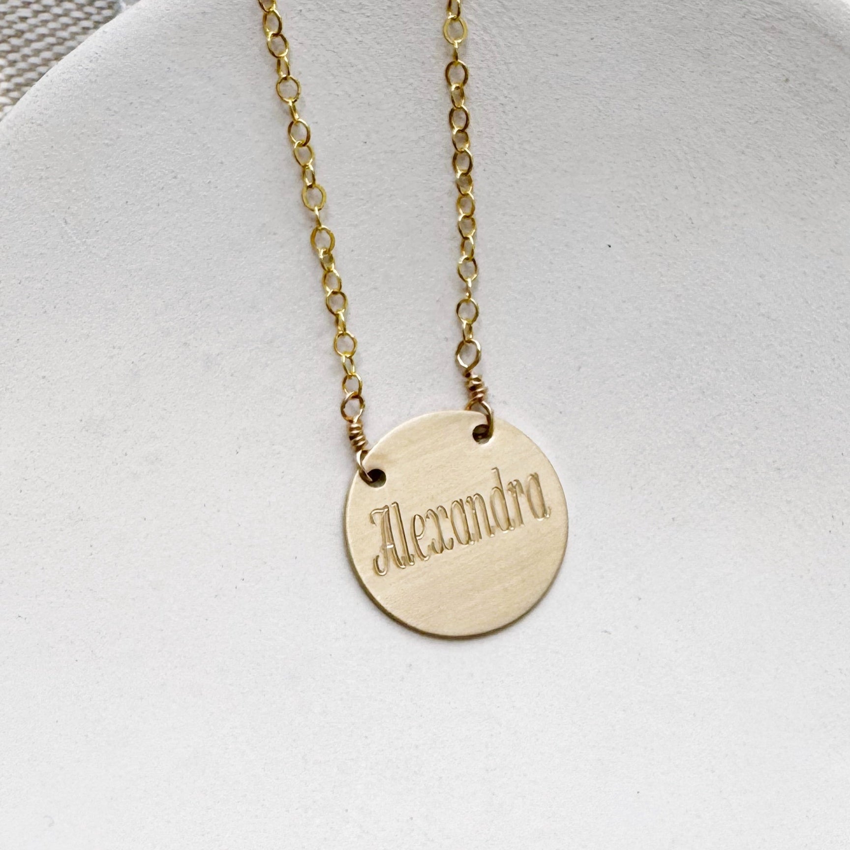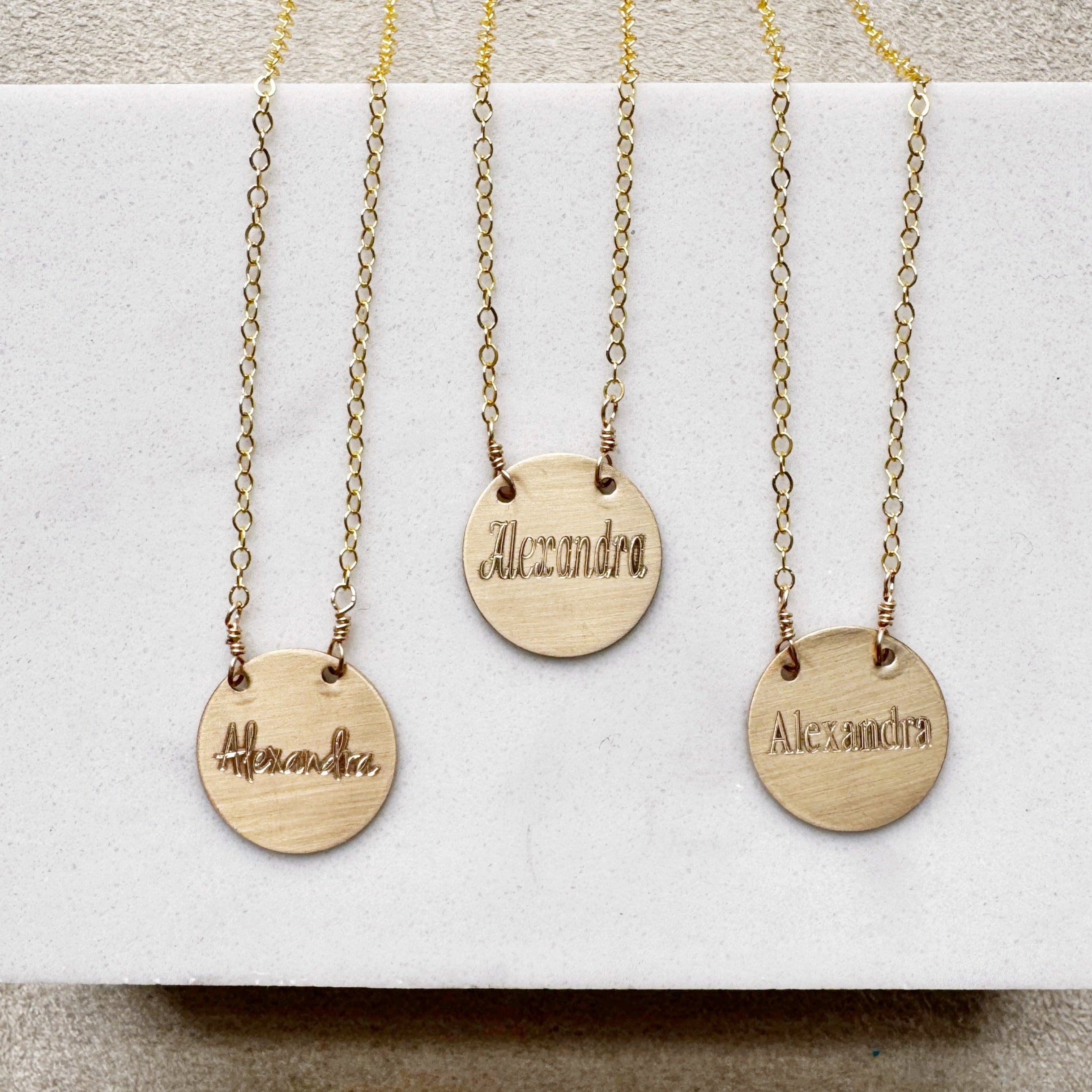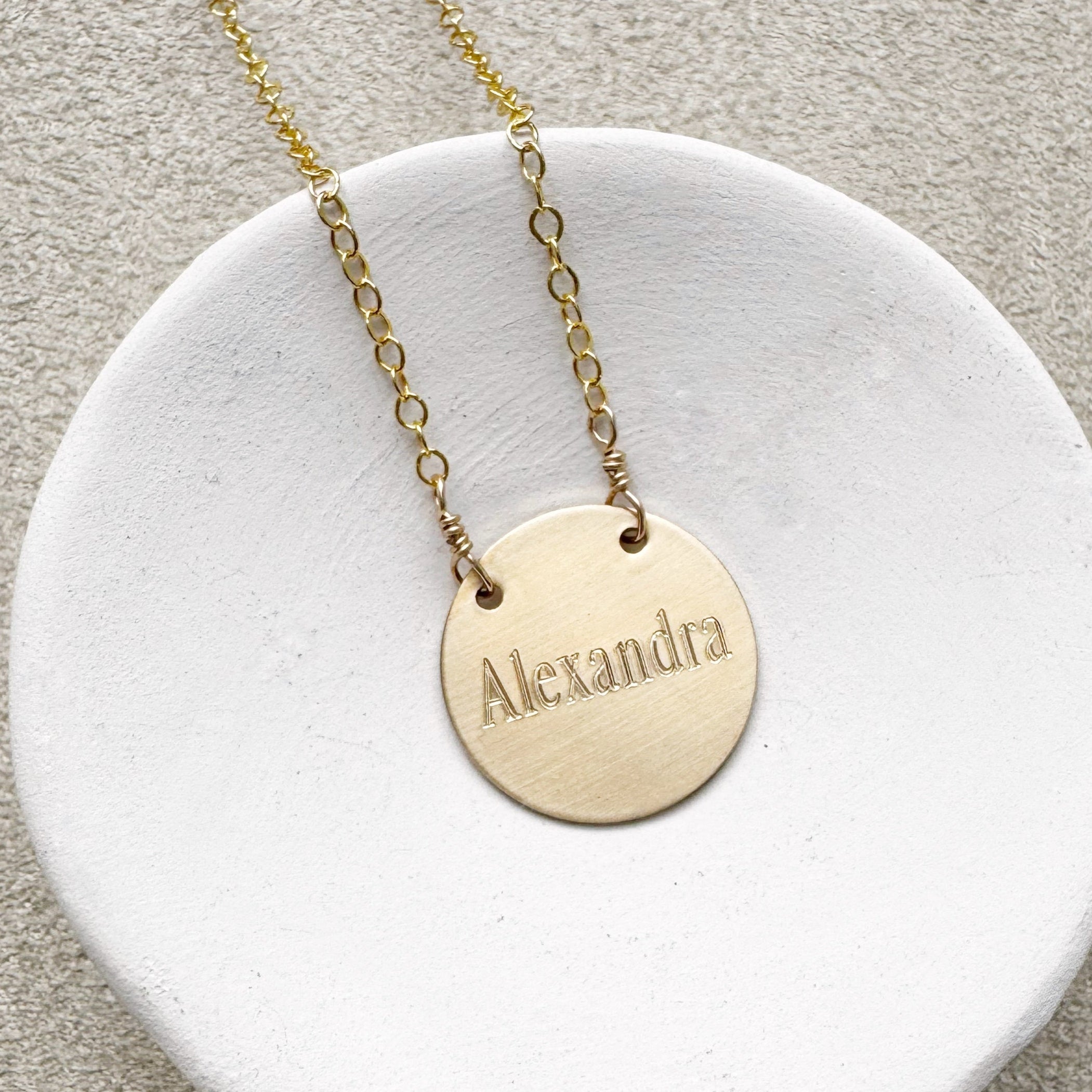 Polished and personal, our Name Necklace has a hand brushed finish and is engraved in our Doylestown, PA studio with a name or word that is meaningful and close to your heart. Layers beautifully with other necklaces and comes in both 14K Gold Filled and Sterling Silver.