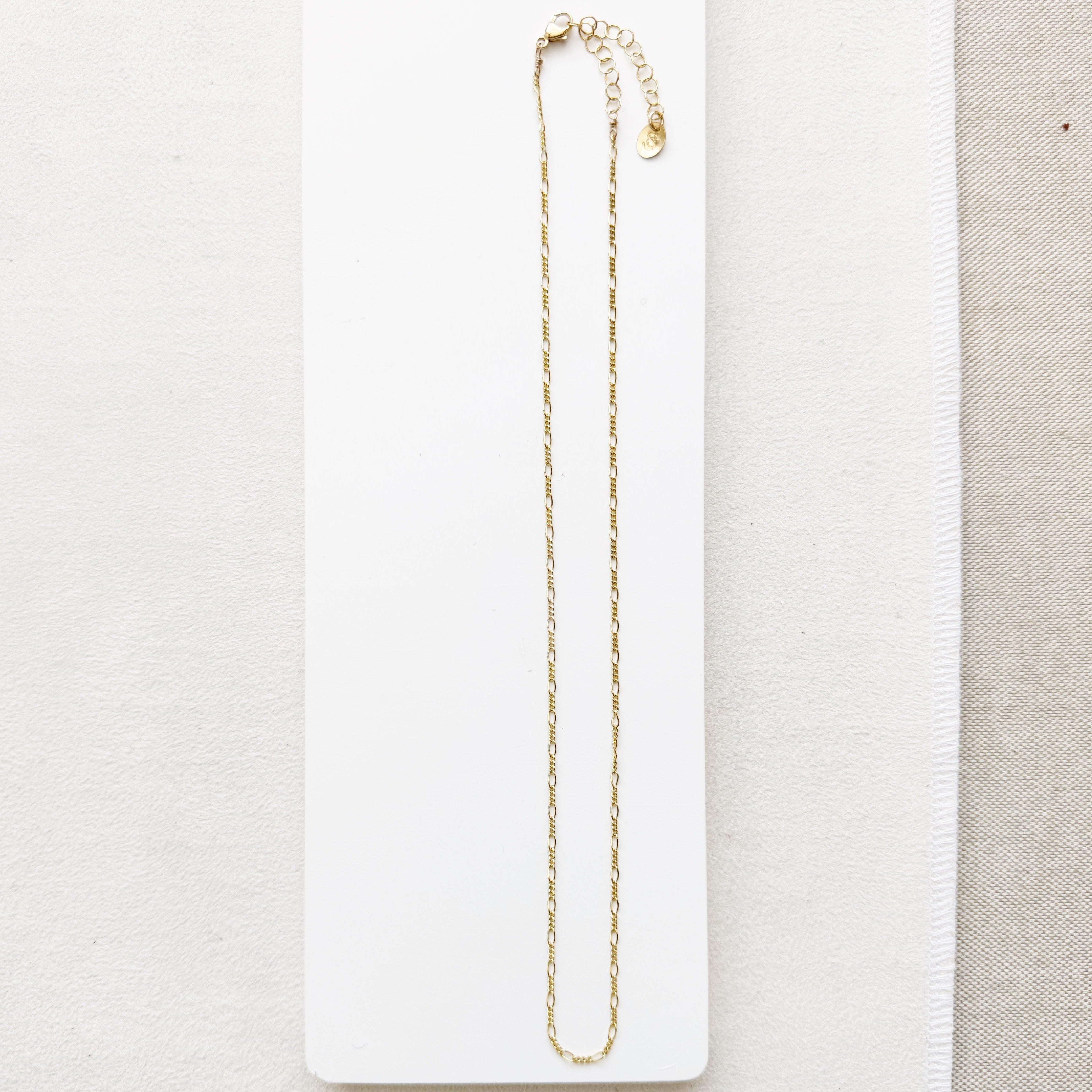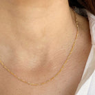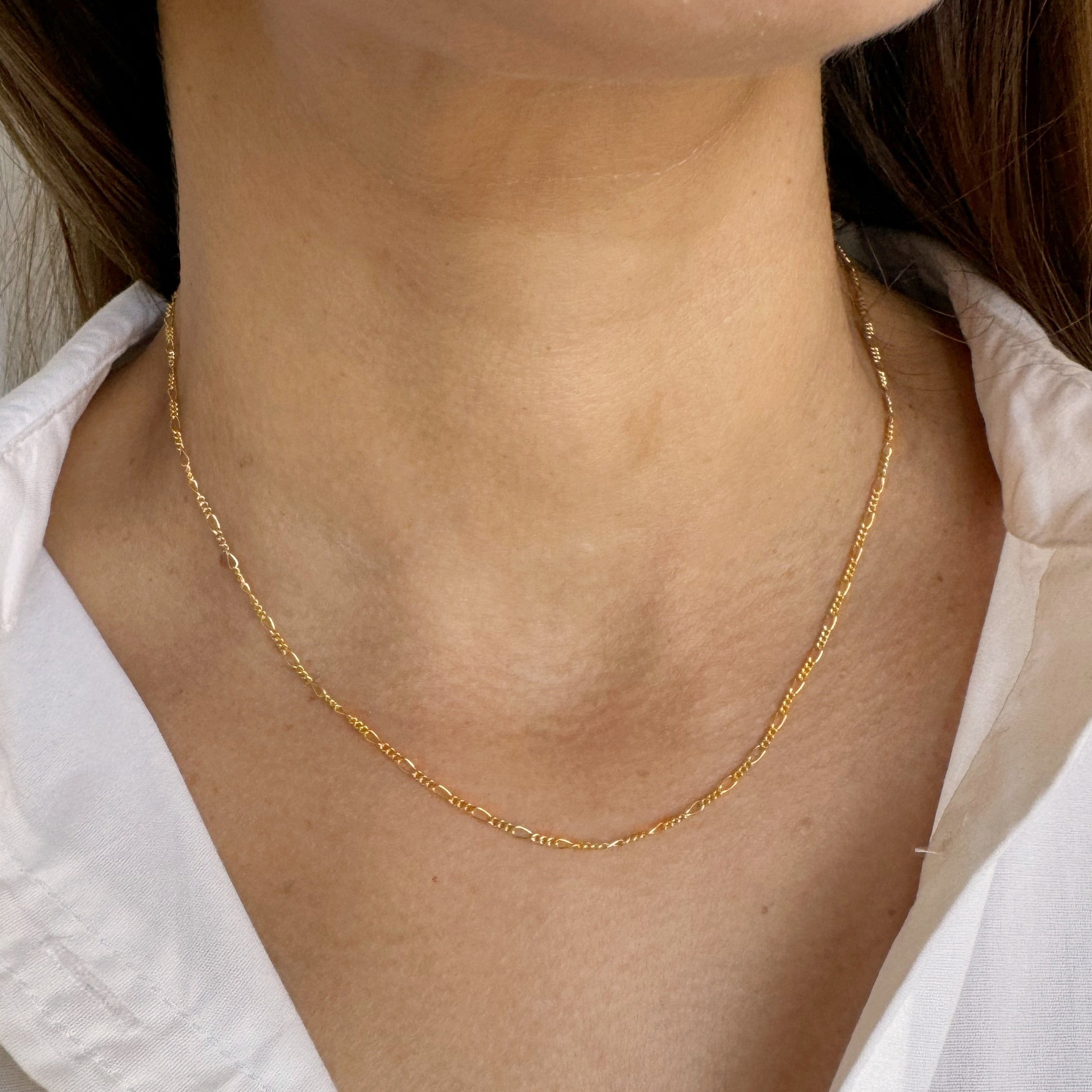 The Fiona Essential Chain has a beautiful pattern that feels dainty and feminine. A pattern of varying lengths of links, creates soft shimmer. Lightweight and perfect for everyday wear. Add one of our Bijou gemstone or pearl charms to effortlessly elevate the Fiona Chain.