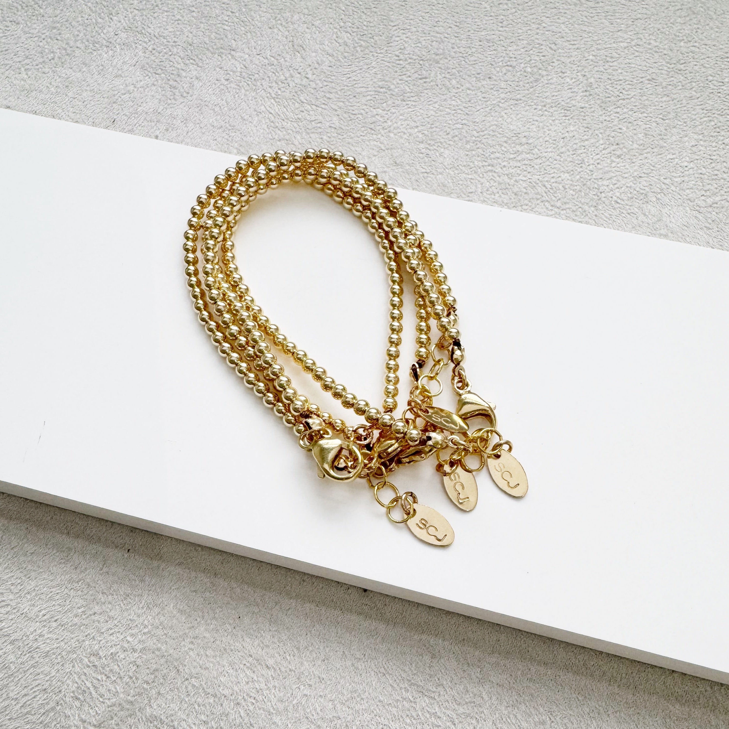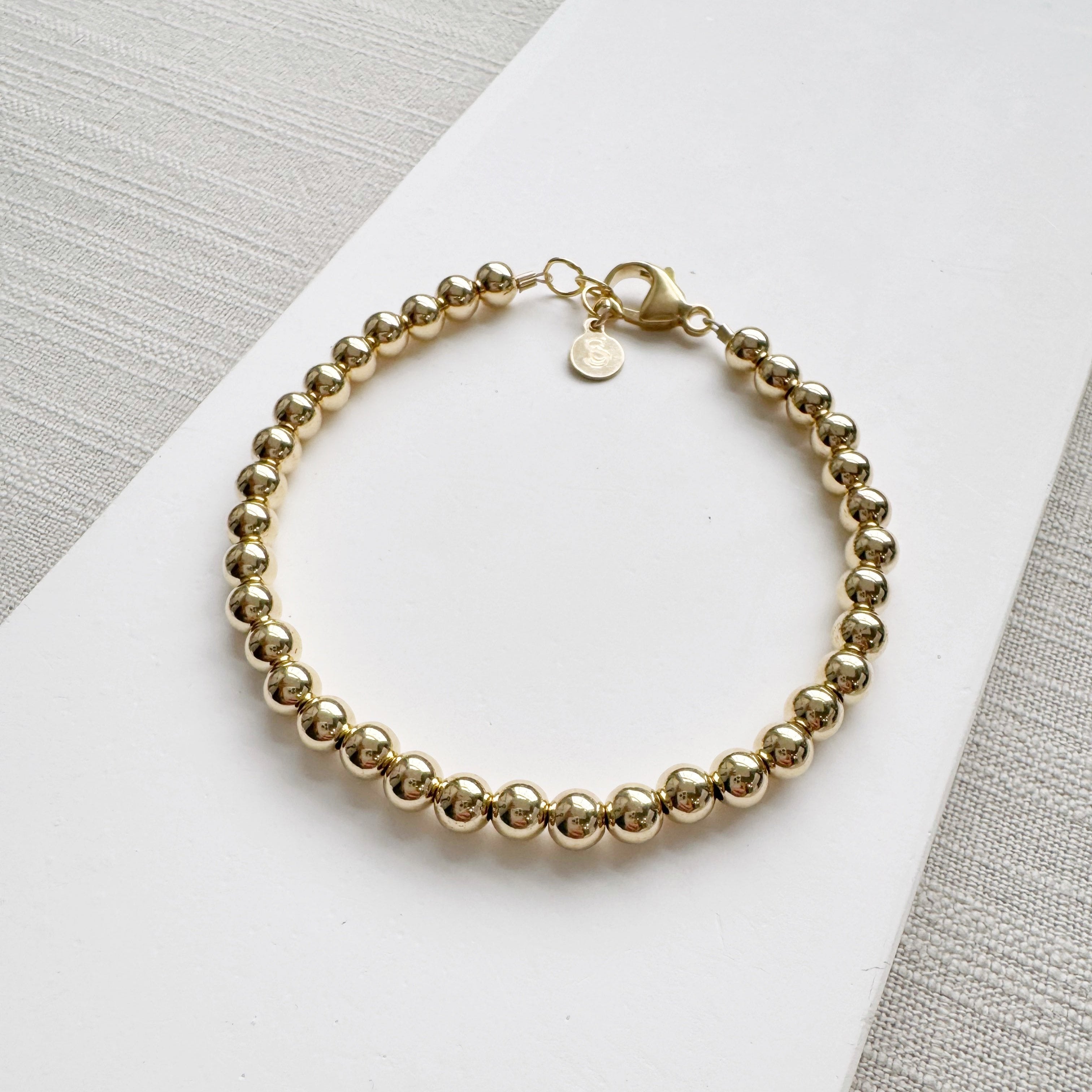 Look no further, the Lynda Bracelet is the perfect addition to your bracelet stack. We know you've seen similar bracelets on "stretchy cord", but this elevated version is made to last. Our 14K gold filled beads are strung on sturdy, 49-strand woven wire that is ultra-flexible and plated in 24K gold. Our sterling silver beads are strung on sturdy, flexible sterling silver wire as well. Choose from our newest Sparkle Lynda from the 2024 Holiday Collection, our best selling Original, or our Grande and Heart styles. Or curate your wrist by mixing and matching your own stack. This classic style will quickly become your everyday favorite!