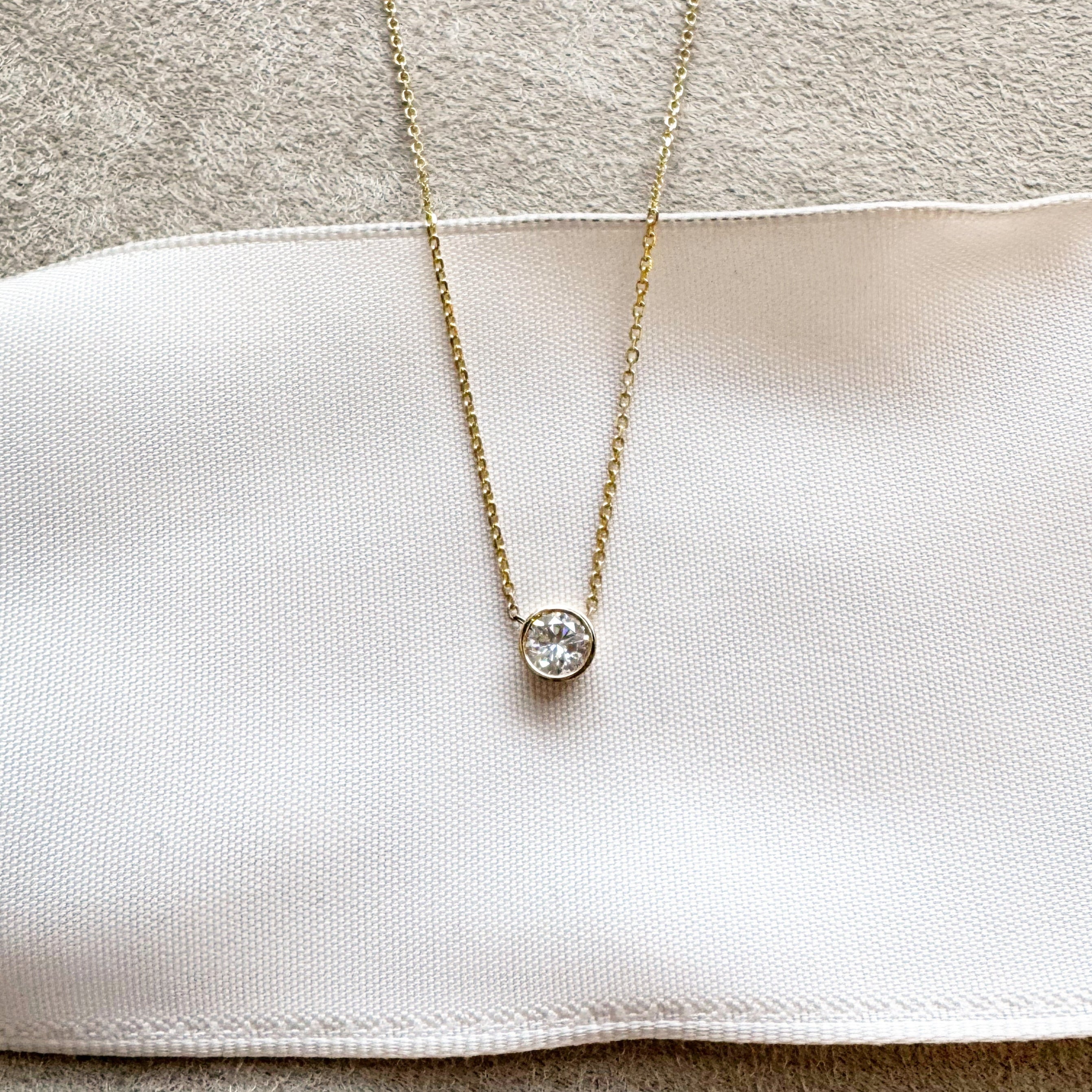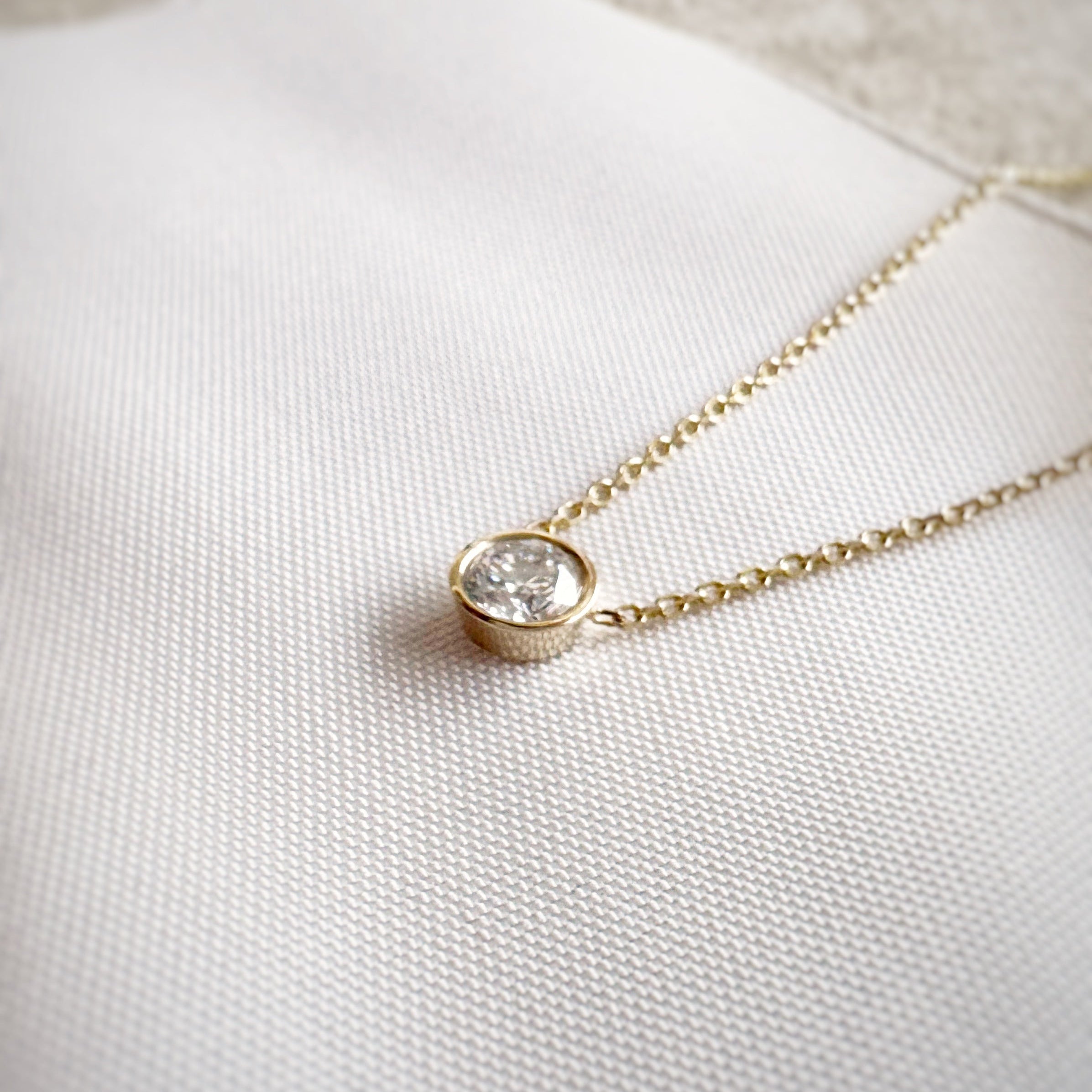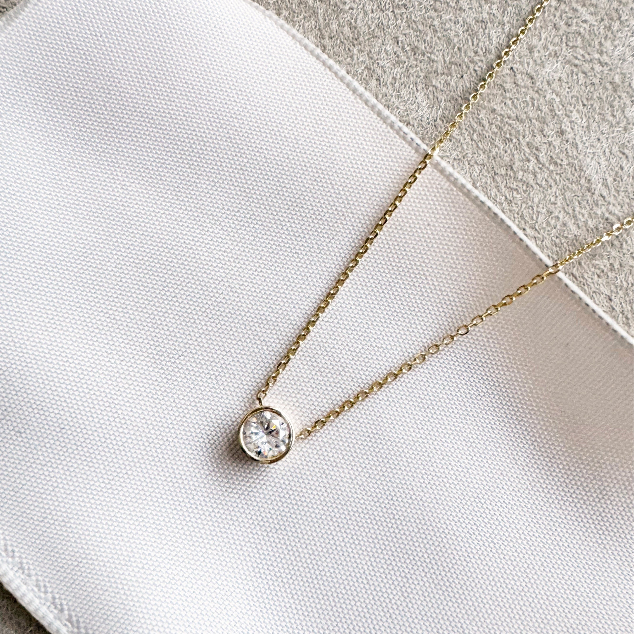 14K Gold Lab Grown Diamond Bezel Necklace (0.65 carat)