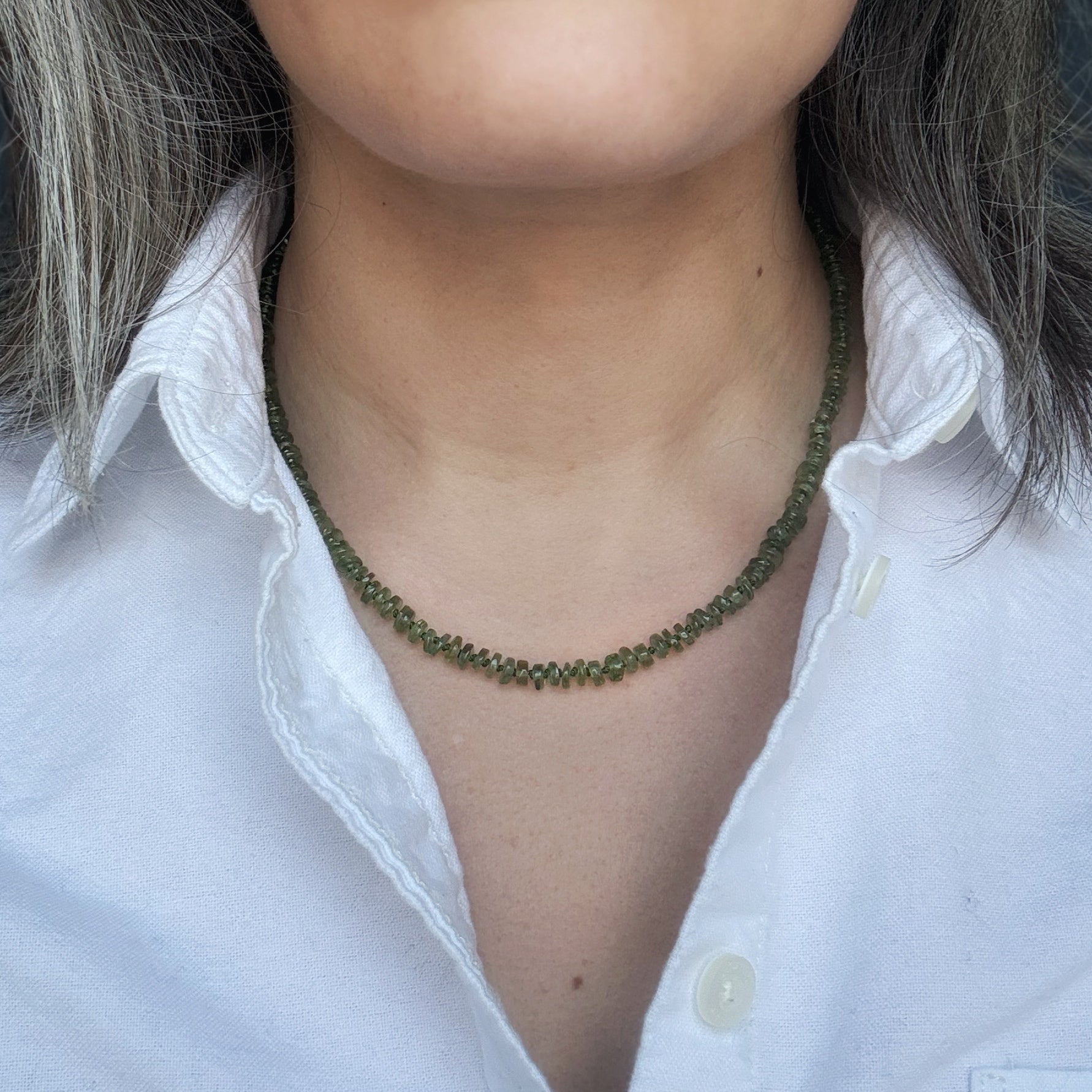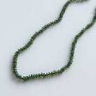 Sparkly green apatite gemstones, knotted by hand on coordinating silk.