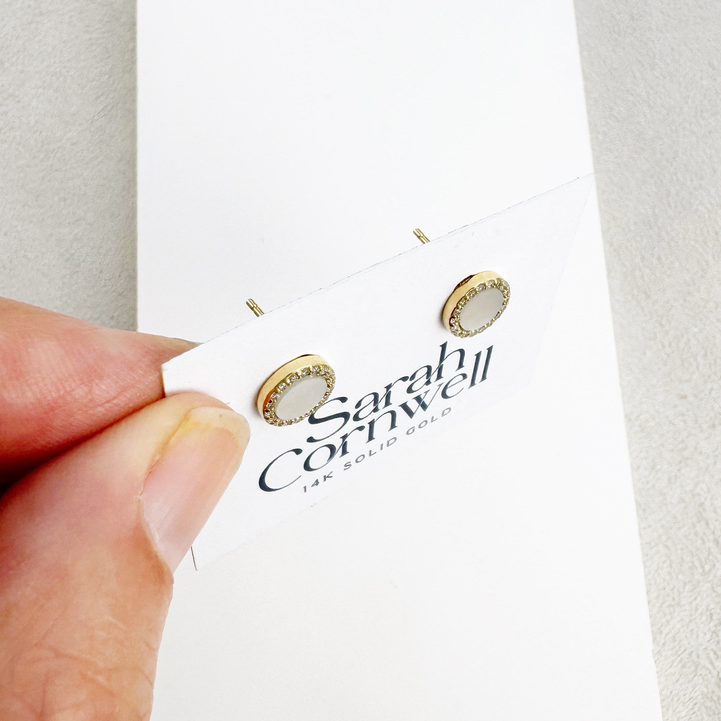 Mother of pearl and diamond studs, unique and luxe - your new all occasion go-to.