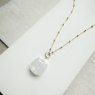 An oblong shaped highly faceted moonstone showcases the optical phenomenon called adularescence, which gives moonstones their signature shimmery flash. Perfect with any chain or bijou necklace, this charm is a versatile attention grabber.