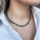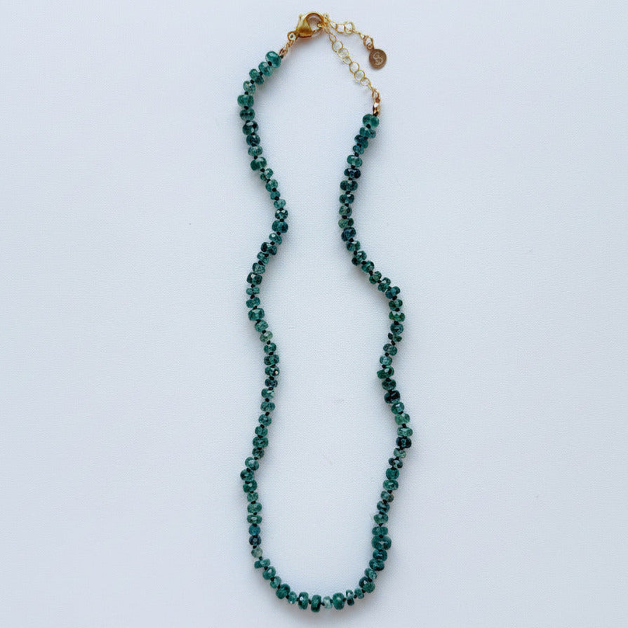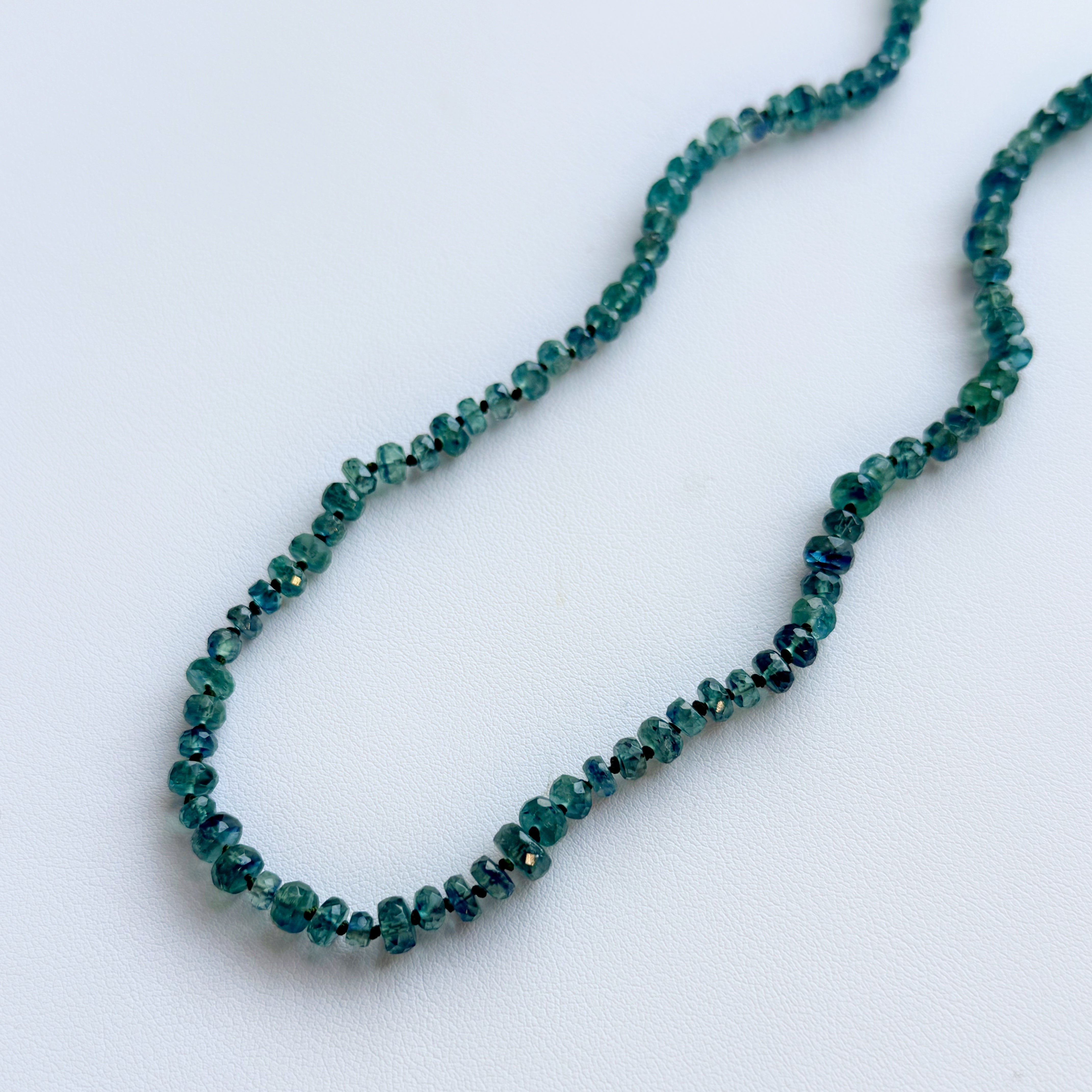 Greenish-blue hued kyanite gemstones with loads of sparkle, knotted by hand on coordinating silk.