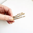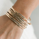 Sometimes it's hard to find just the right words. Our Noteworthy Bangles make it easy to send the perfect sentiment. One of our most popular gift giving pieces! Noteworthy Bangles are subtle and thoughtful. They're a classic and comfortable bangle that can be worn everyday and plays well with all your other jewelry pieces.