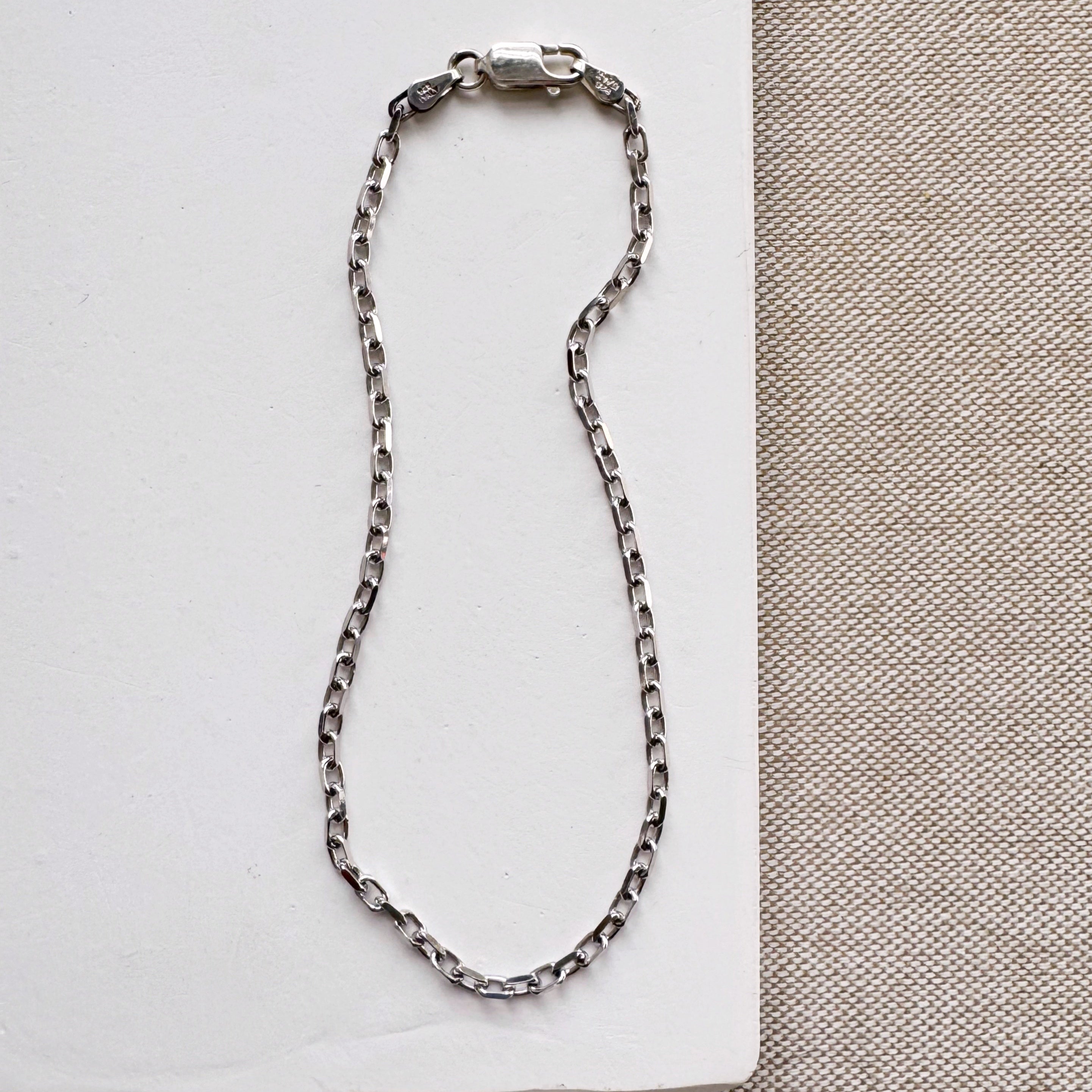 An Anchora style chain is designed using individual oval links.  These interlock alternately horizontally and vertically. This pattern is very robust but also a little more airy and light.