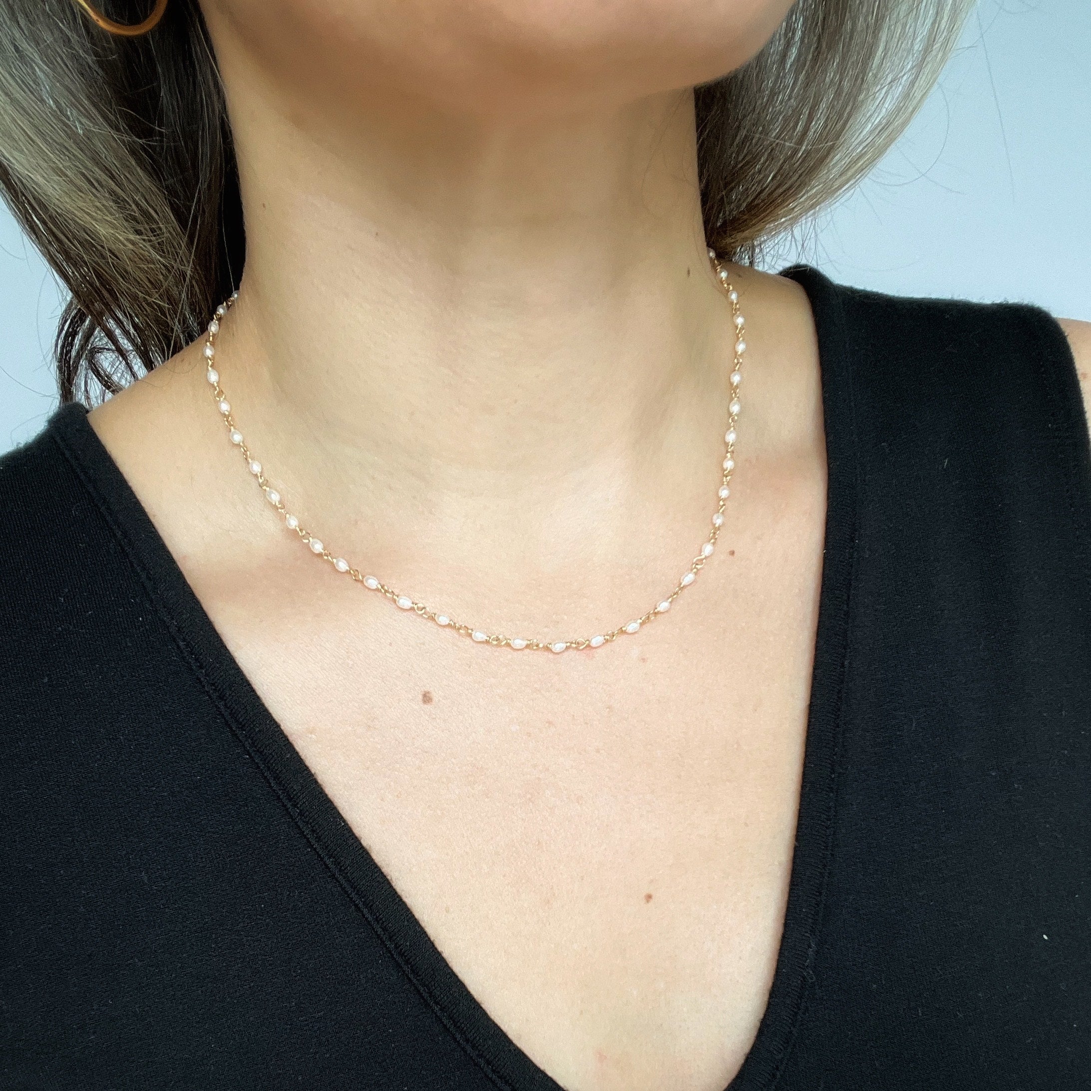 Stack. Layer. Shine. The Cordelia necklace brings just the right amount of sparkle. Cordelia's classic design pairs just as well with your favorite jeans and a crisp white button down as it does with a dress and heels. The 2-inch extender makes it easy to style. Wear it alone or layer this versatile necklace with our Deene or Ross necklaces for 2 unique looks. This is a special necklace you will be loving for years!