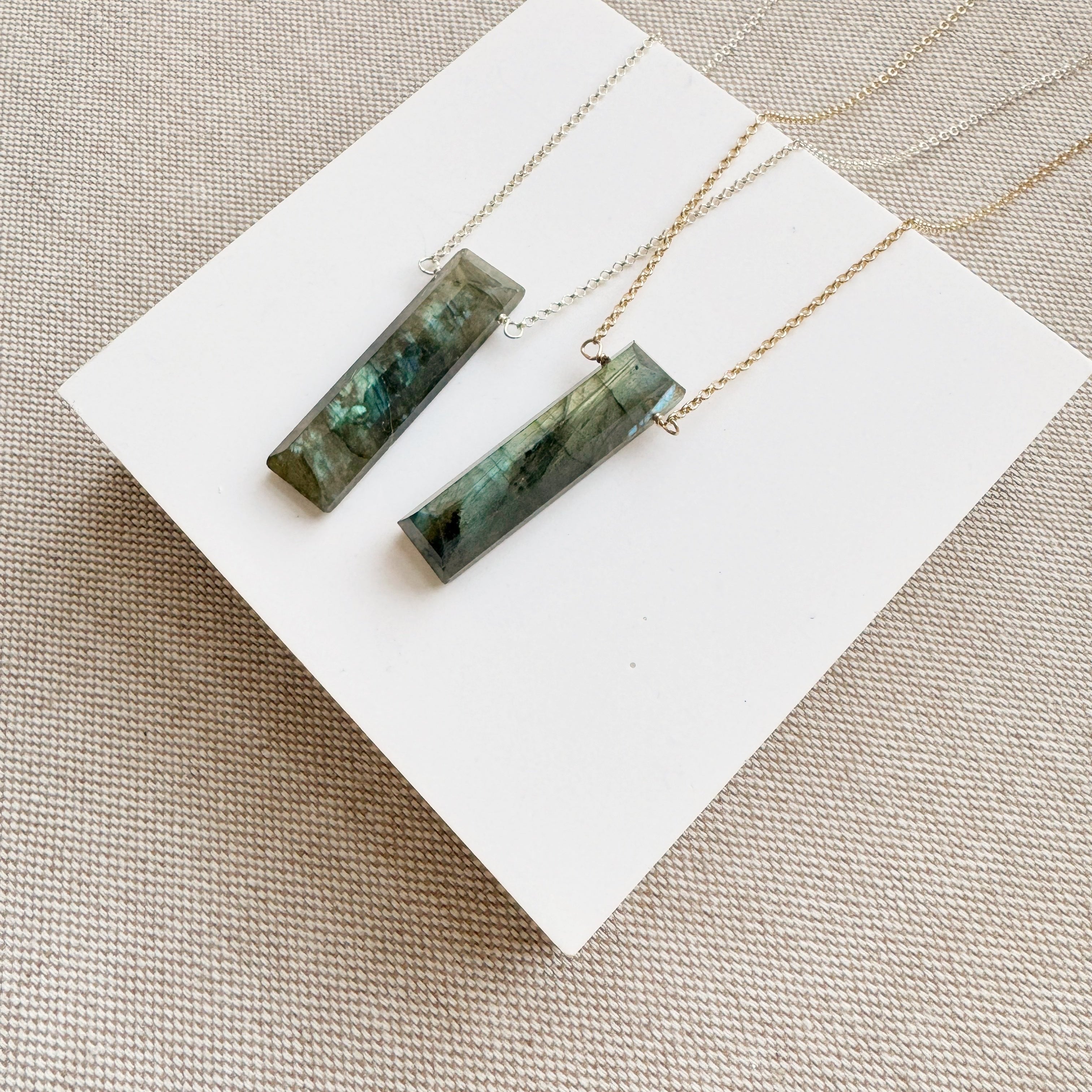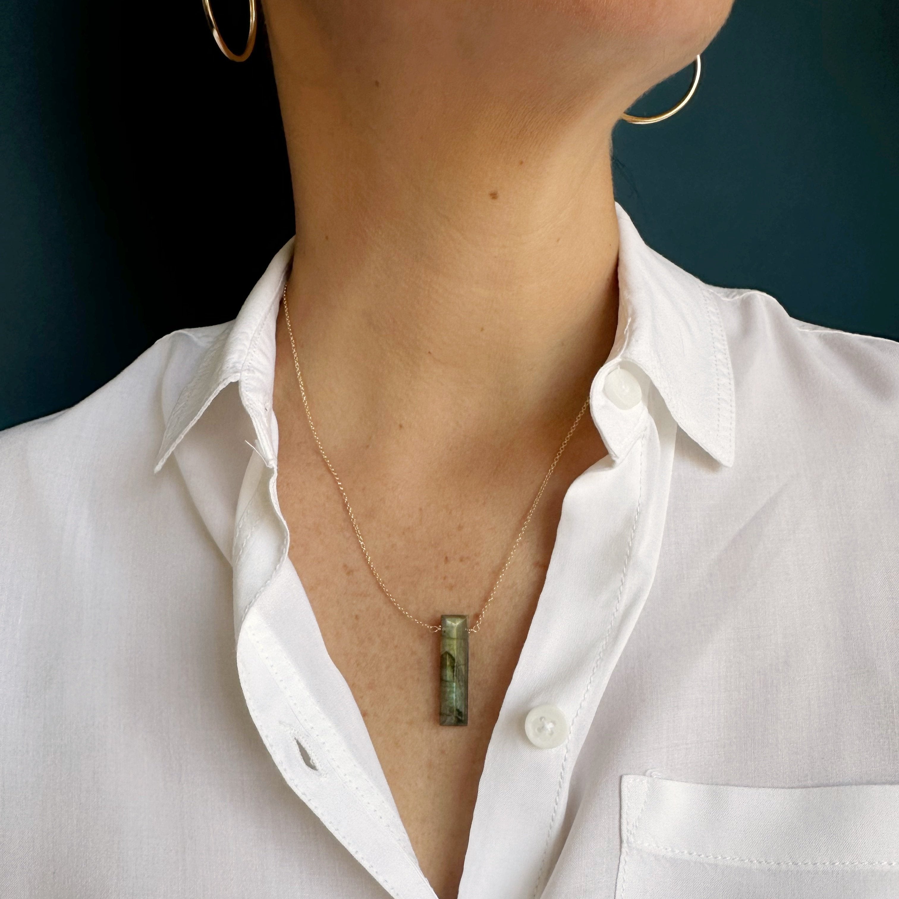 Labradorite with stunning "flash" and a beautiful cut. This necklace will turn heads every time you walk into the room.