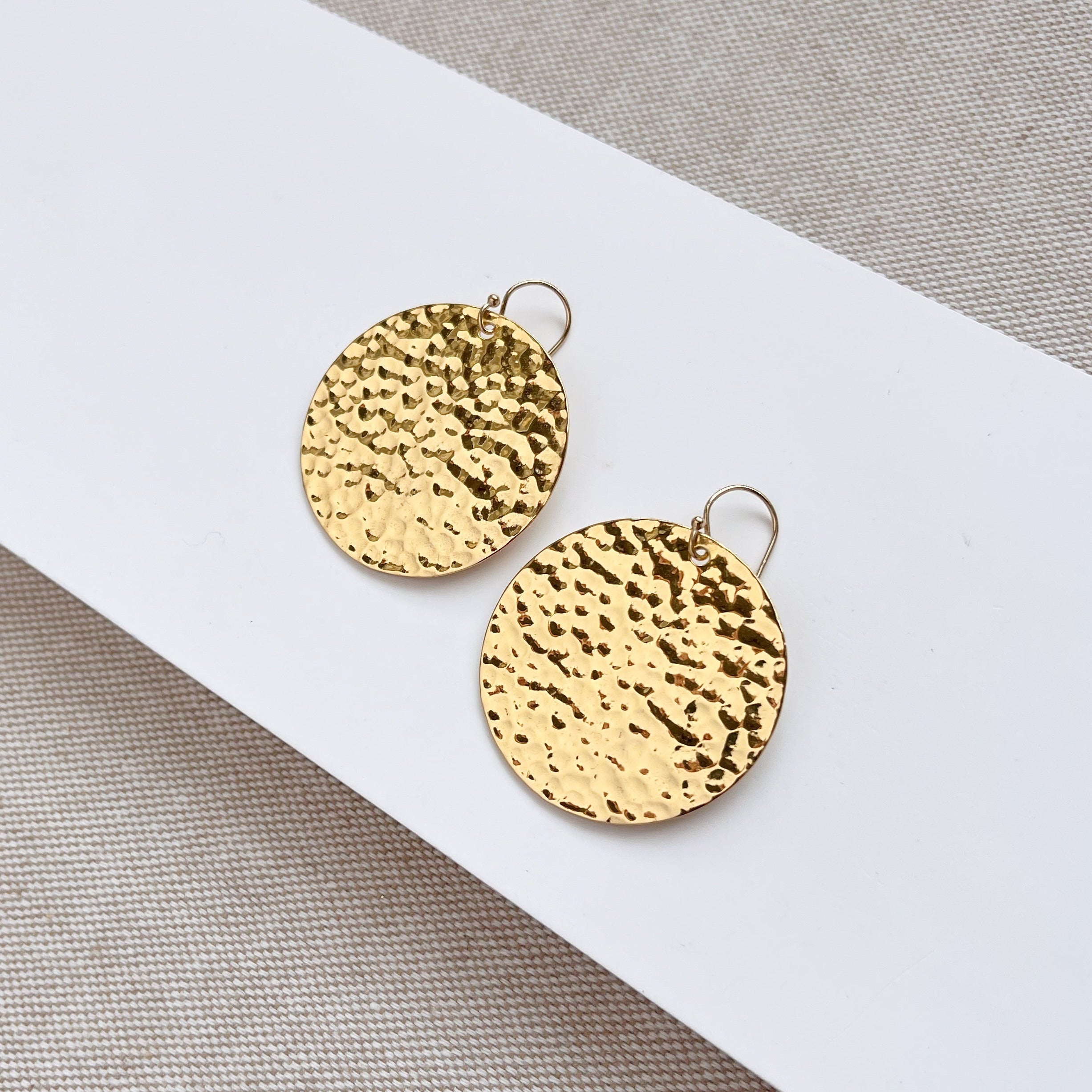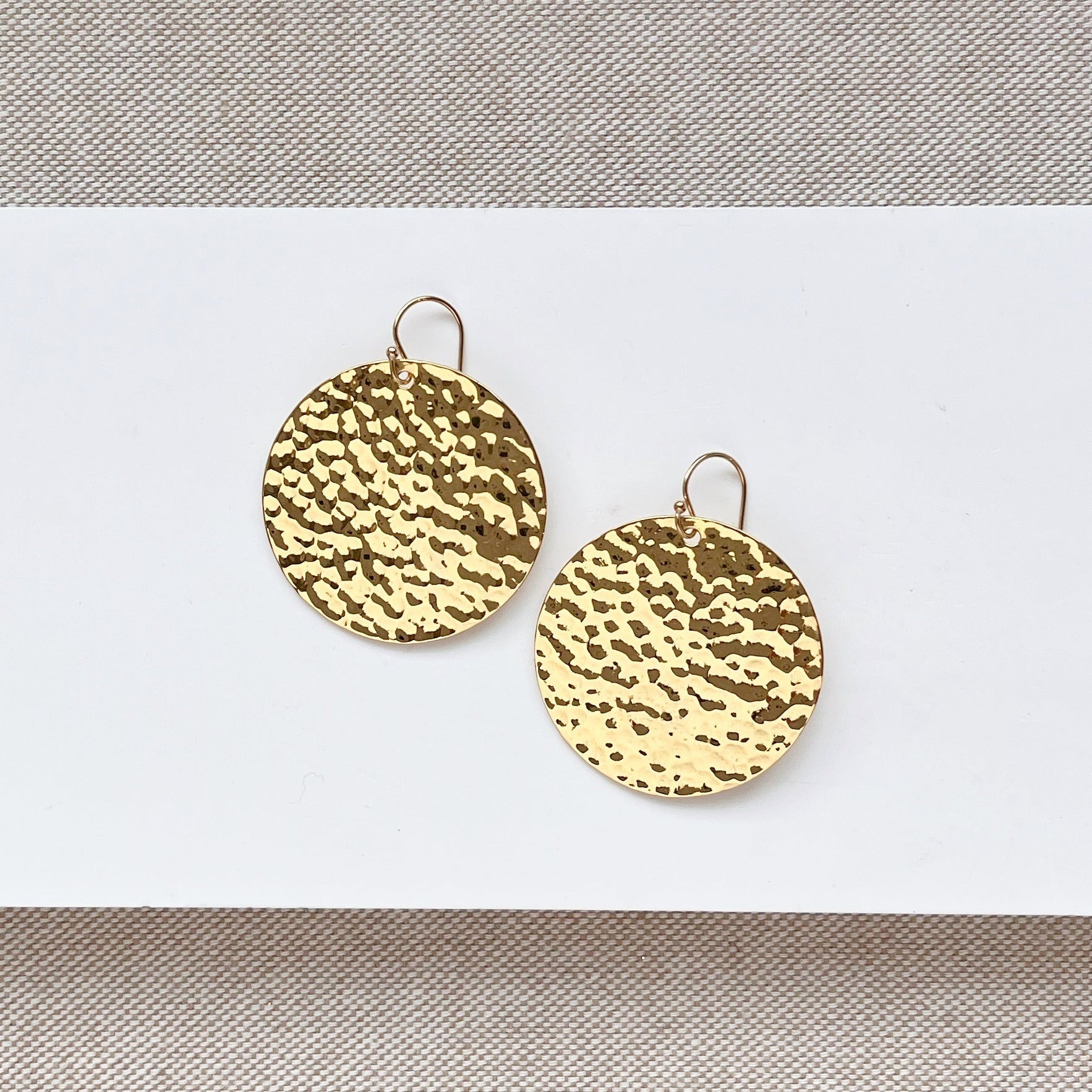 Make a statement effortlessly with the Phoebe Earrings, designed to complement every outfit and transition seamlessly from day to evening. These lightweight disc earrings are crafted with a delicate hammered texture, adding a subtle shimmer that's perfect for any occasion.