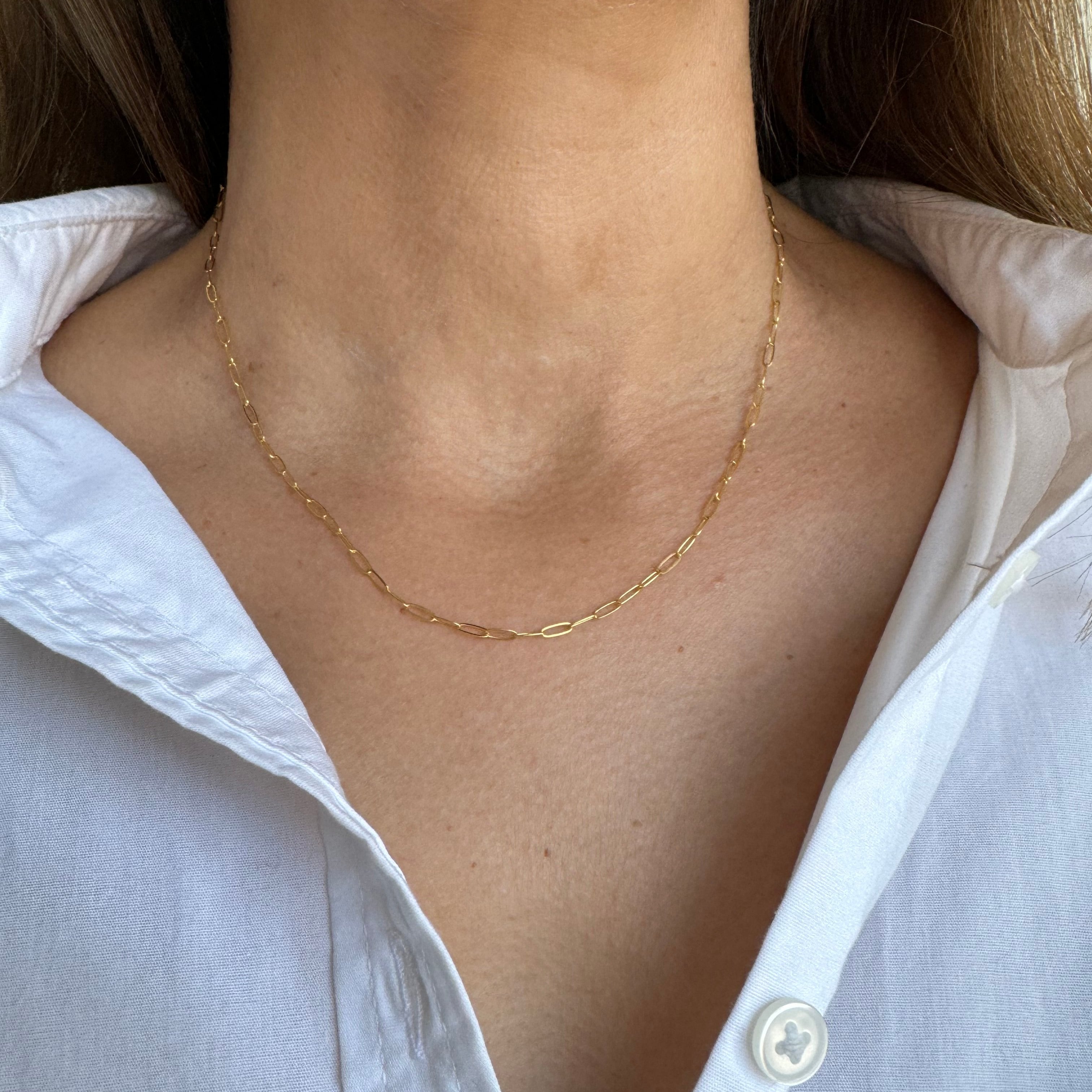 Essential for a reason, our best-selling Savannah chain is shimmery and dainty, plays well with other jewelry, and is the perfect base for a special statement pendant or a cluster of charms. A true foundation piece - it's rectangle links make it both modern and classic, while being versatile enough to wear on it's own, layered or with any combination of charms you can dream up.