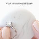 This delicate jewelry polisher is a game-changer for tarnished or dull jewelry, especially sterling silver and gold pieces that have lost their luster over time. Unlike traditional polishing cloths, the Illuminating Pom is both chemical-free and scent-free, making it a safe and convenient choice for all your jewelry cleaning needs. The unique sponge-like material is specially designed to effectively remove tarnish without the use of harsh chemicals.