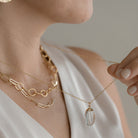 Our White Frost necklace features an exquisite smooth cut crystal quartz drop on sparkly link chain. Icicle vibes and sophisticated statement impact make this necklace perfect for donning over both cozy sweaters and plunging necklines. Beautiful on it's own or perfect layered with other pieces, you'll feel sophisticated and instantly refined the moment you put it on.
