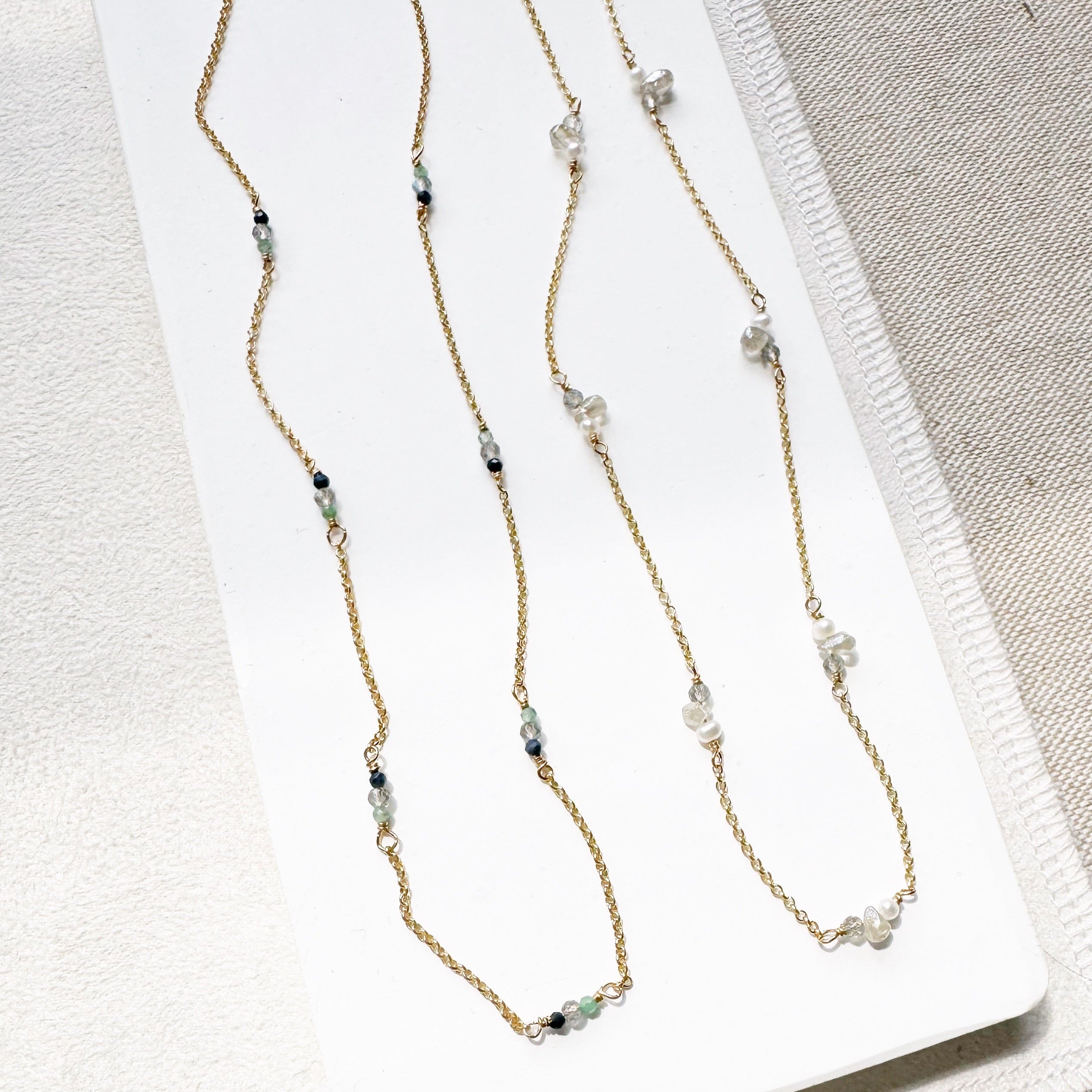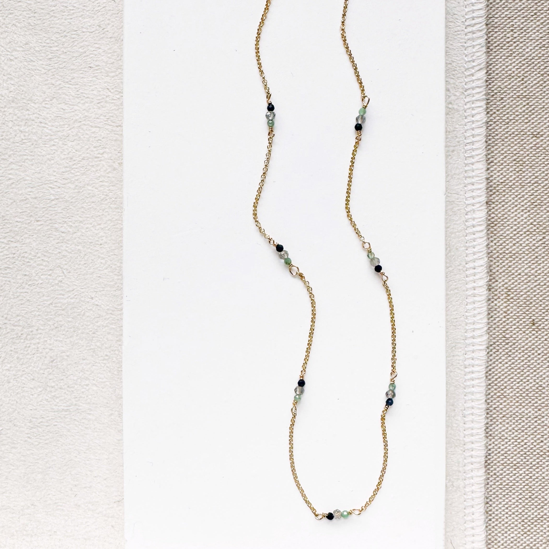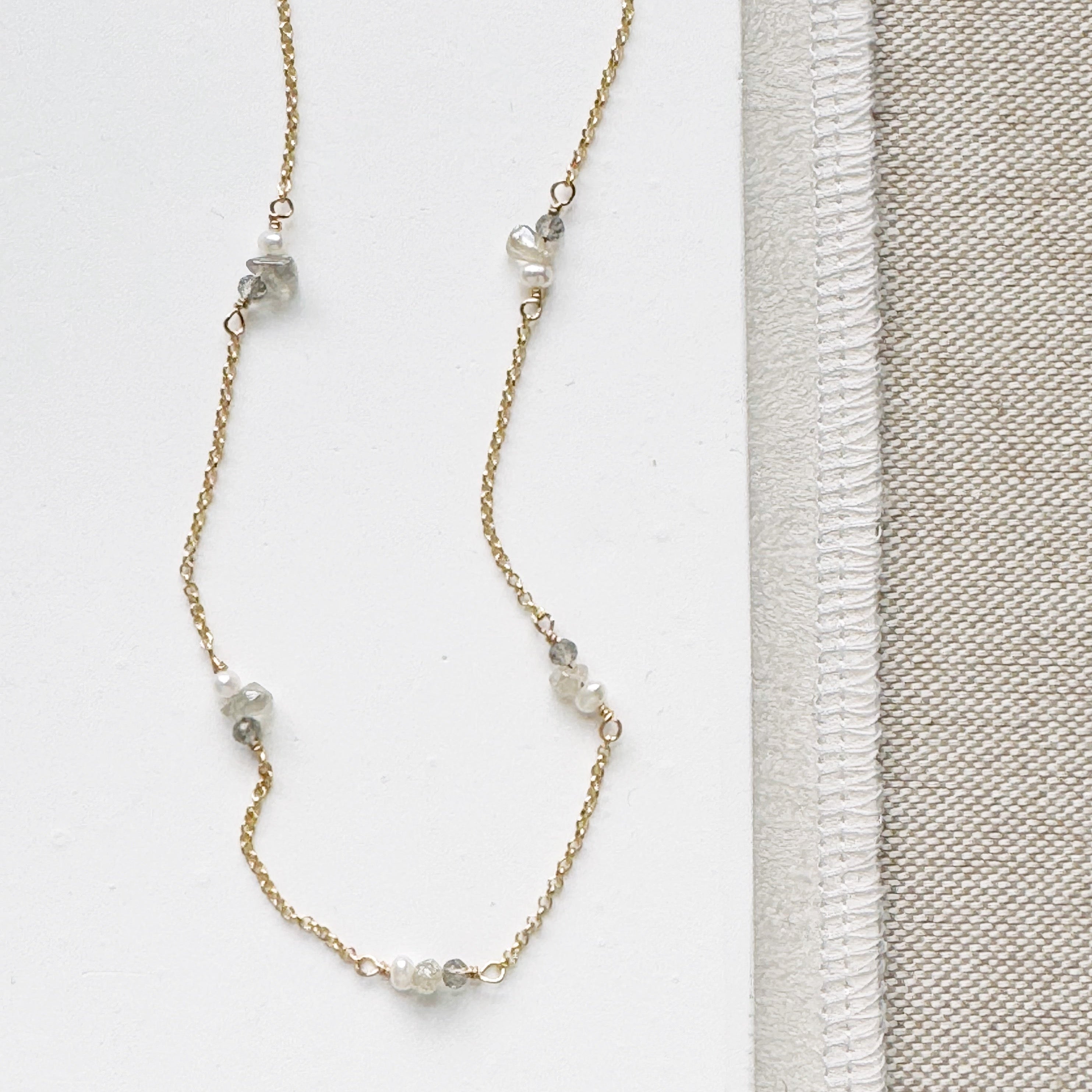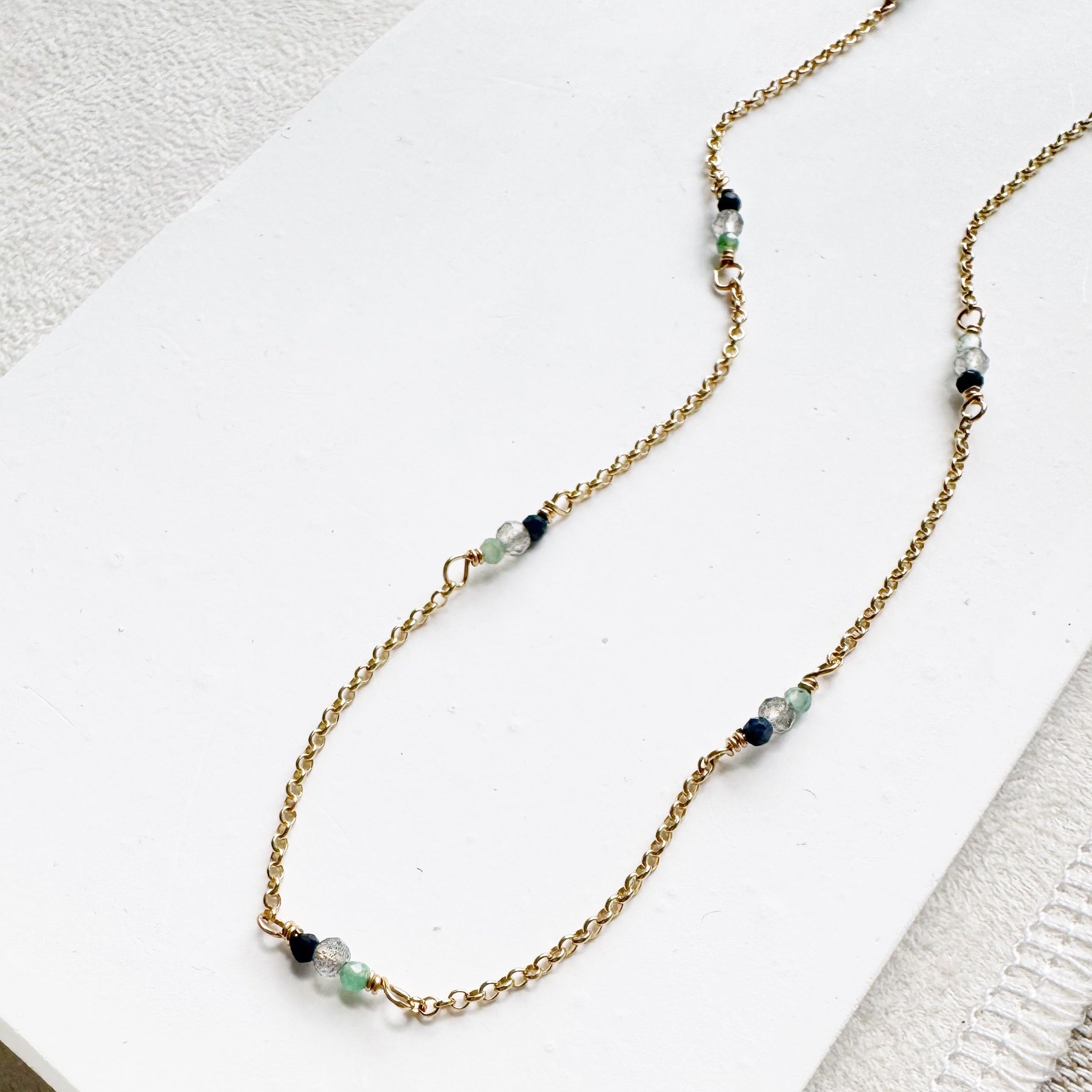 Stack. Layer. Shine. A truly beautiful combination of natural gemstones. This necklace is neutral and versatile. Wear it alone or layer with another necklace. Choose from pearl, zircon and labradorite or sapphire, labradorite and emerald